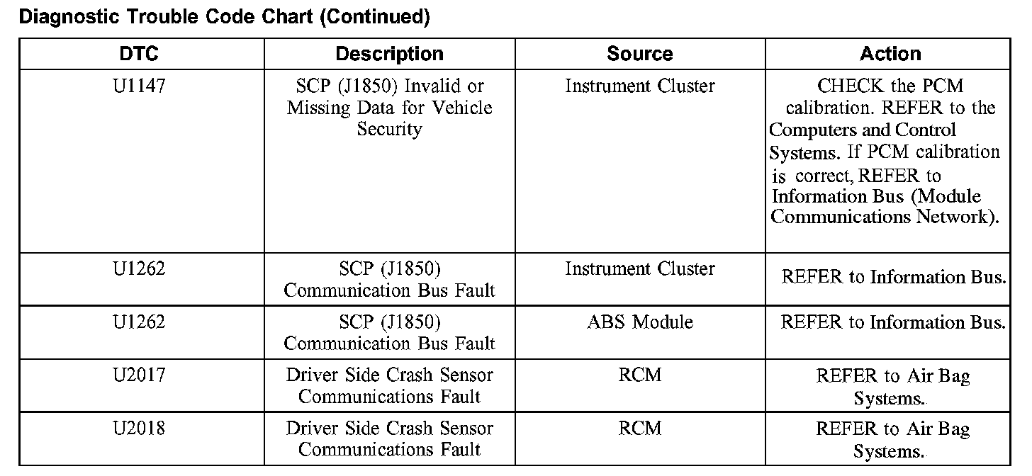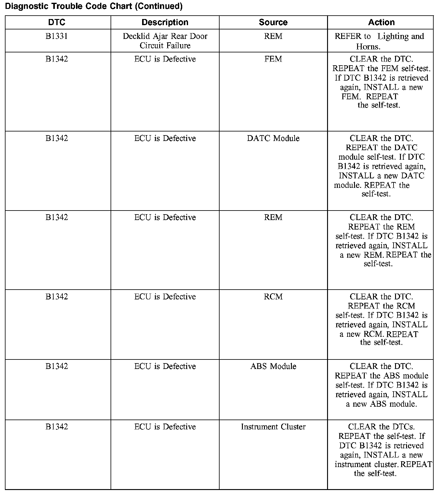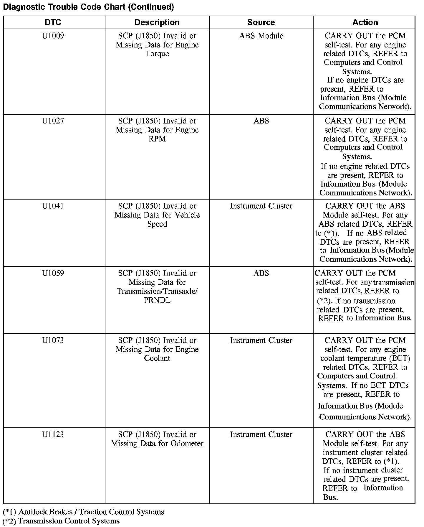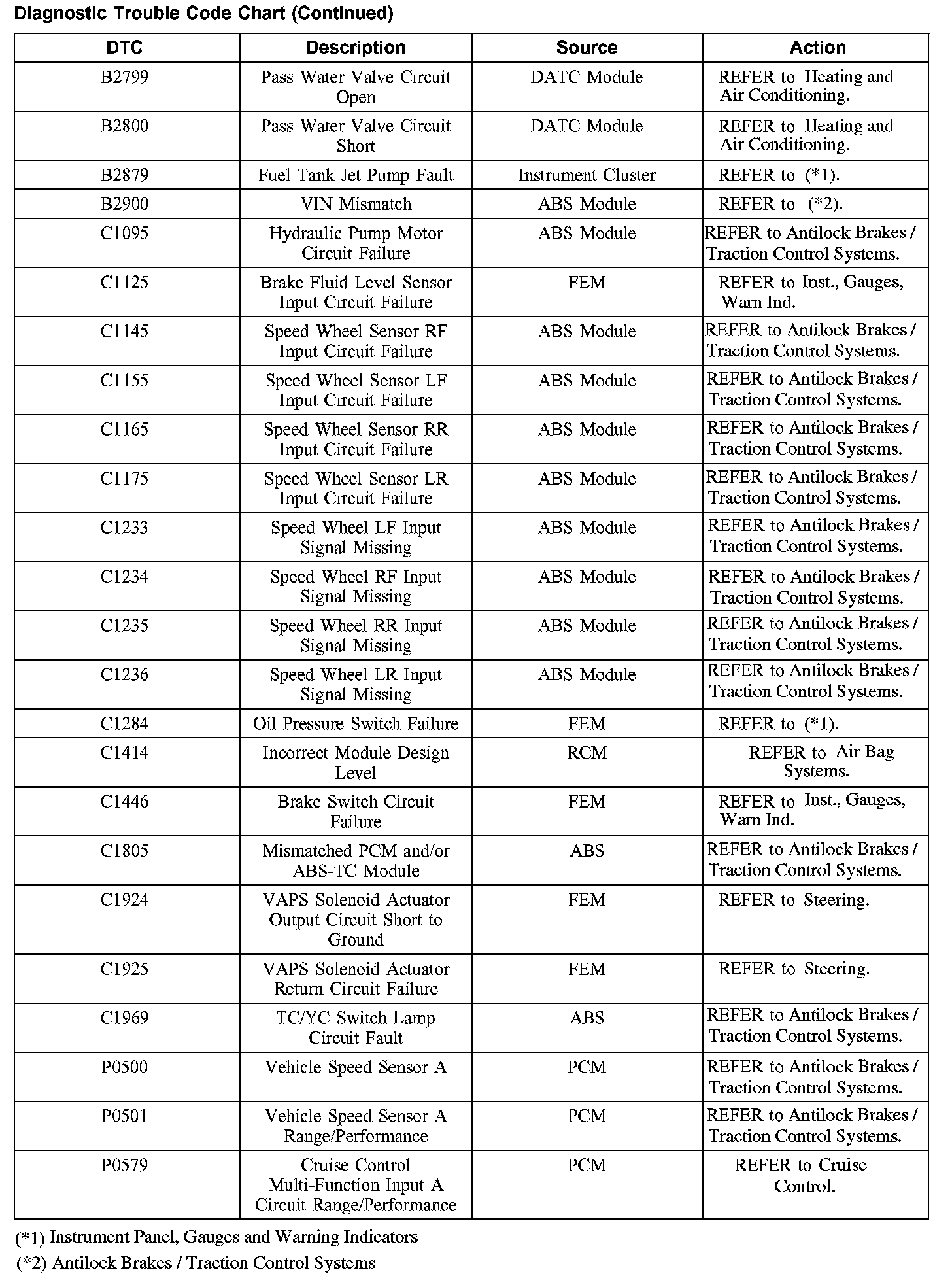 DIAGNOSTIC TROUBLE CODE (DTC) CHARTB1201-B1327: