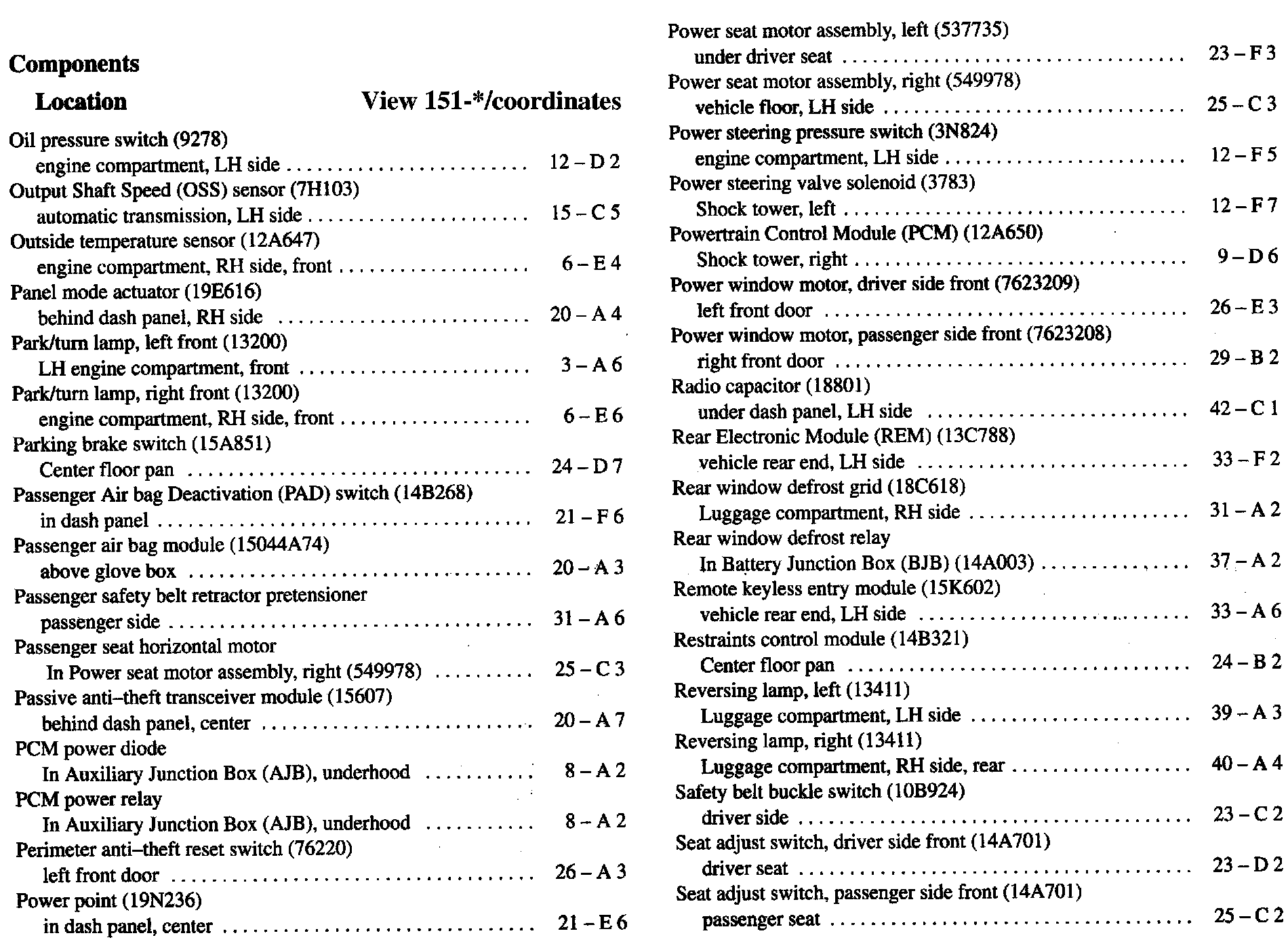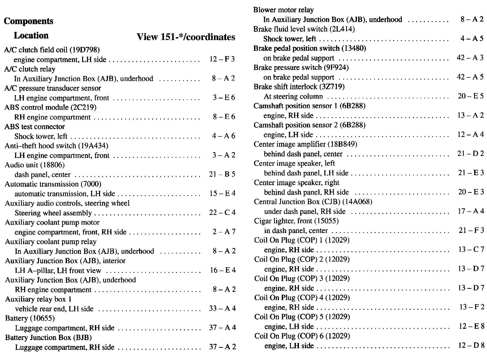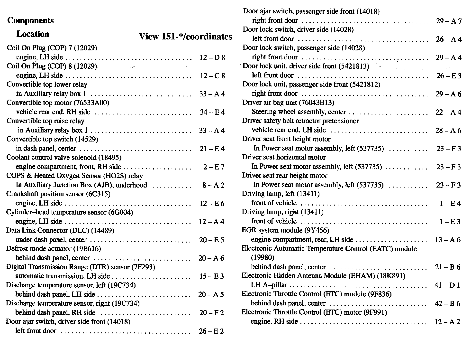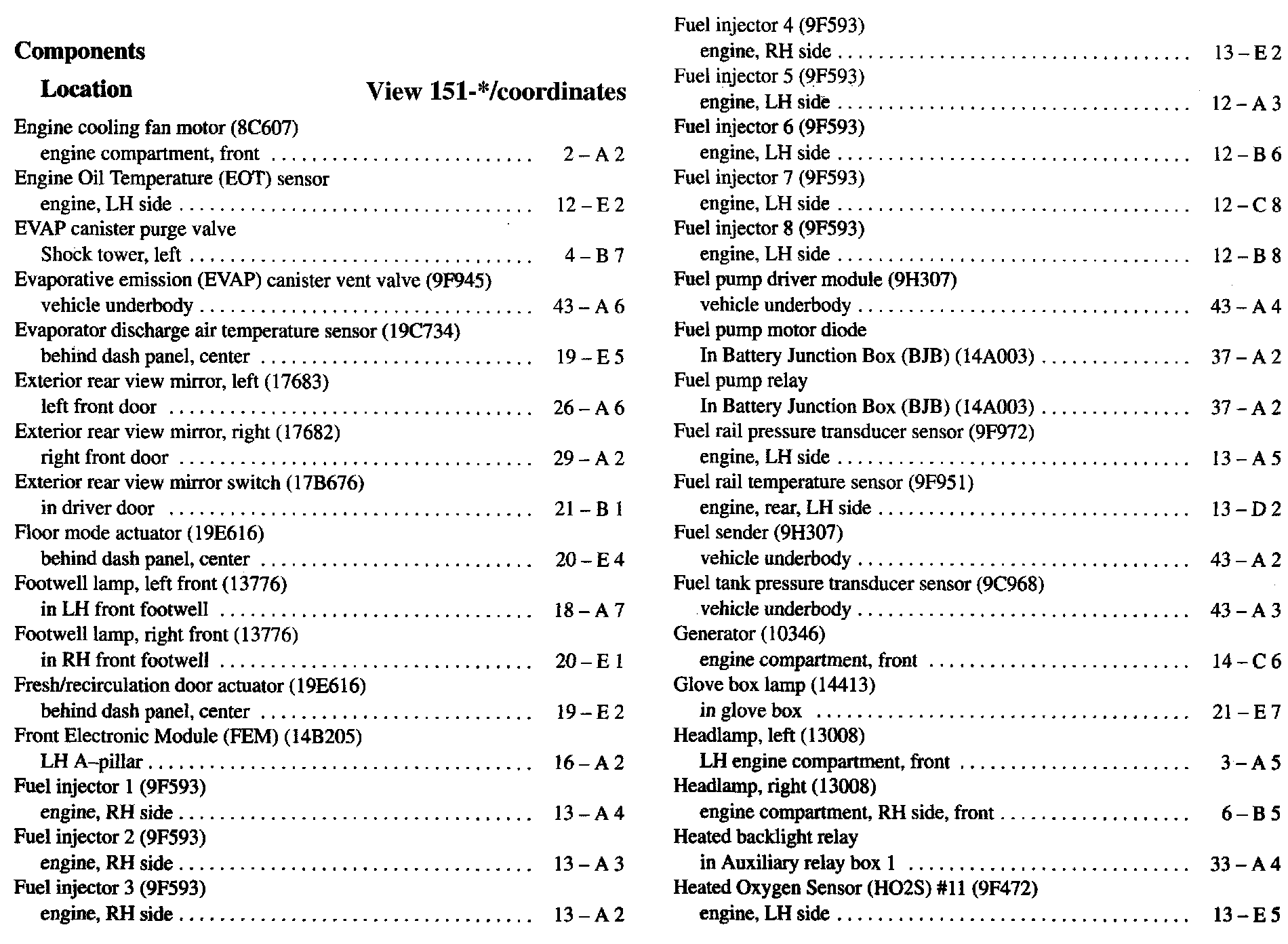 If a link on the Component Location Index to a View is not provided, that means that the Component and/or View in question does NOT apply to the vehicle model selected.