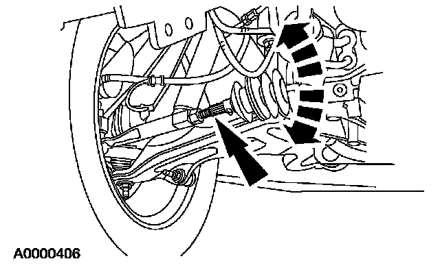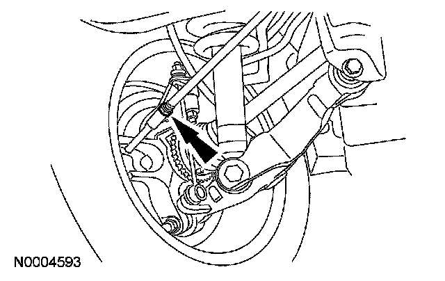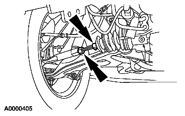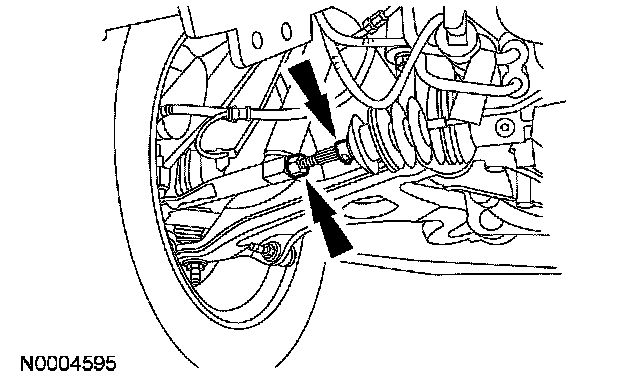 4. NOTE: Do not allow the steering gear bellows to twist when the front wheel spindle inner tie-rod is rotated.