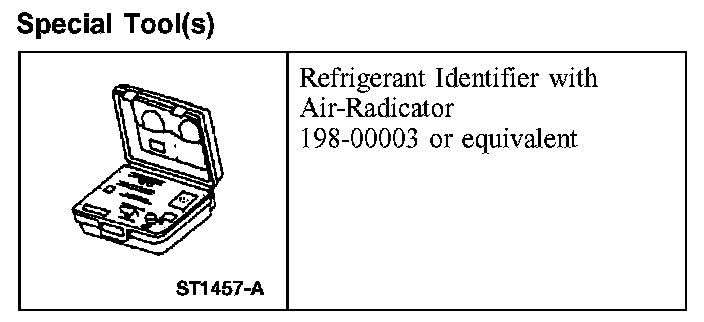 1. NOTE: An A/C refrigerant analyzer must be used to identify gas samples taken directly from the refrigeration system or storage containers prior to recovering or charging the refrigerant system.