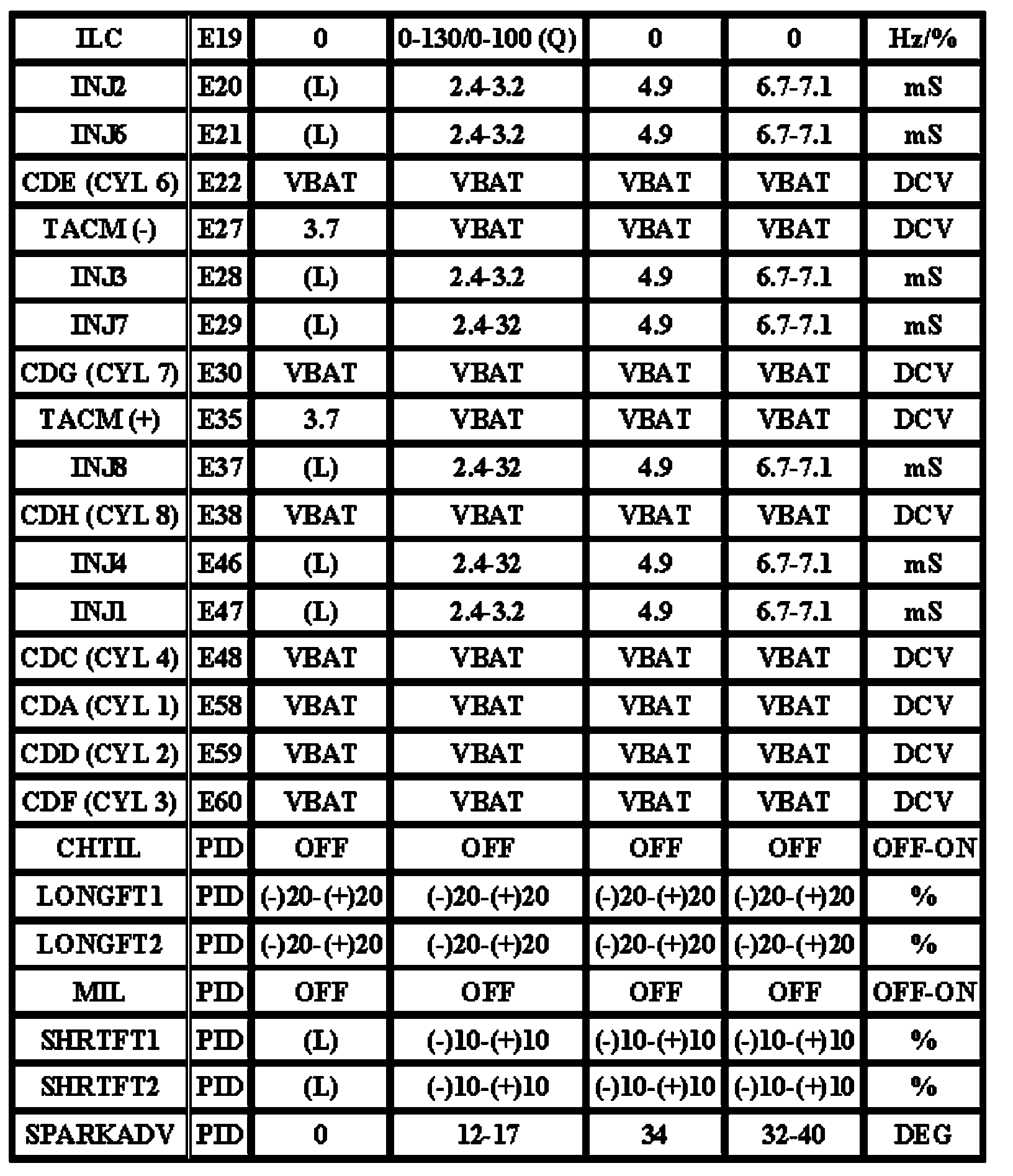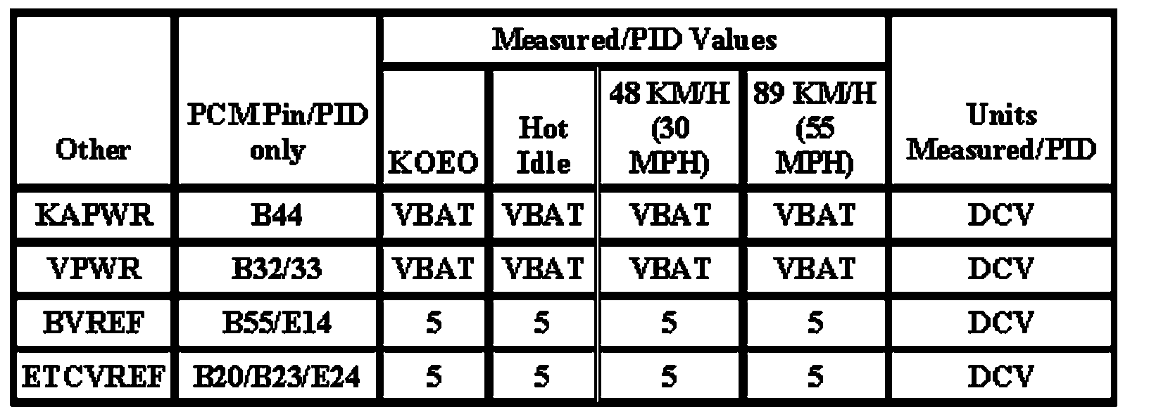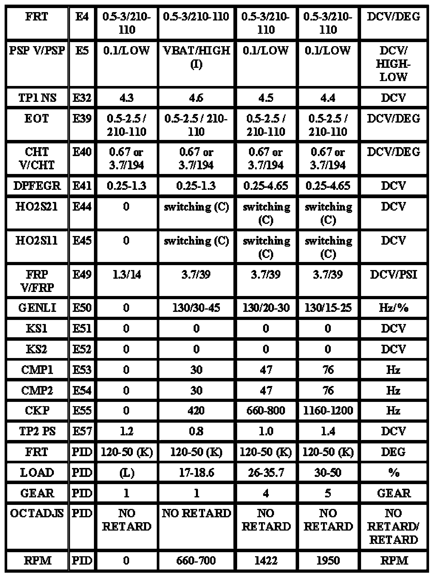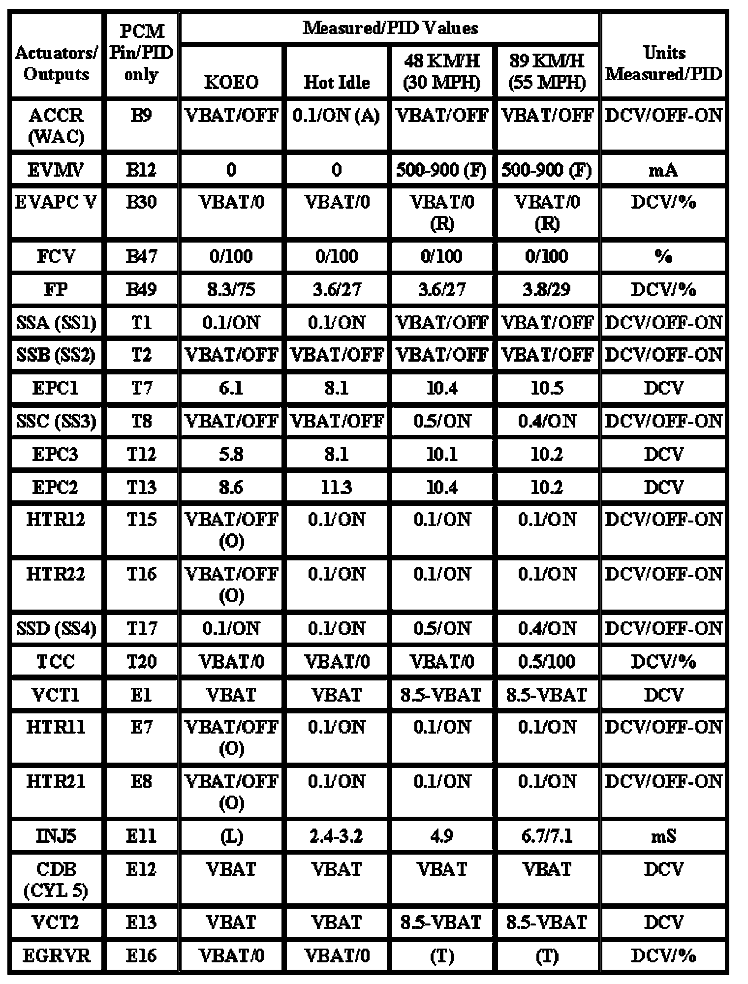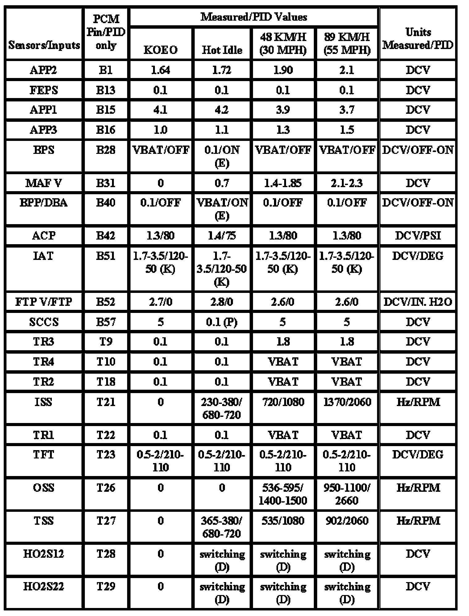 Note: All generic OBD readings under no load (PARK or NEUTRAL).