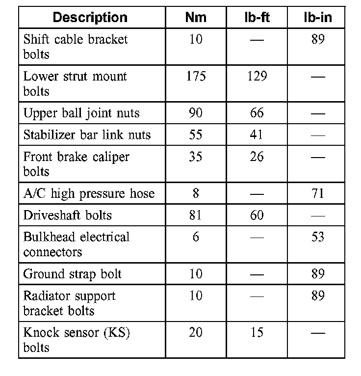 Torque Specifications