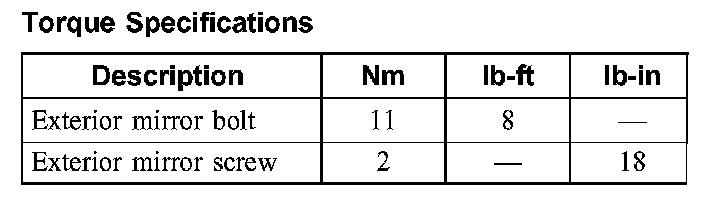 Torque Specifications: