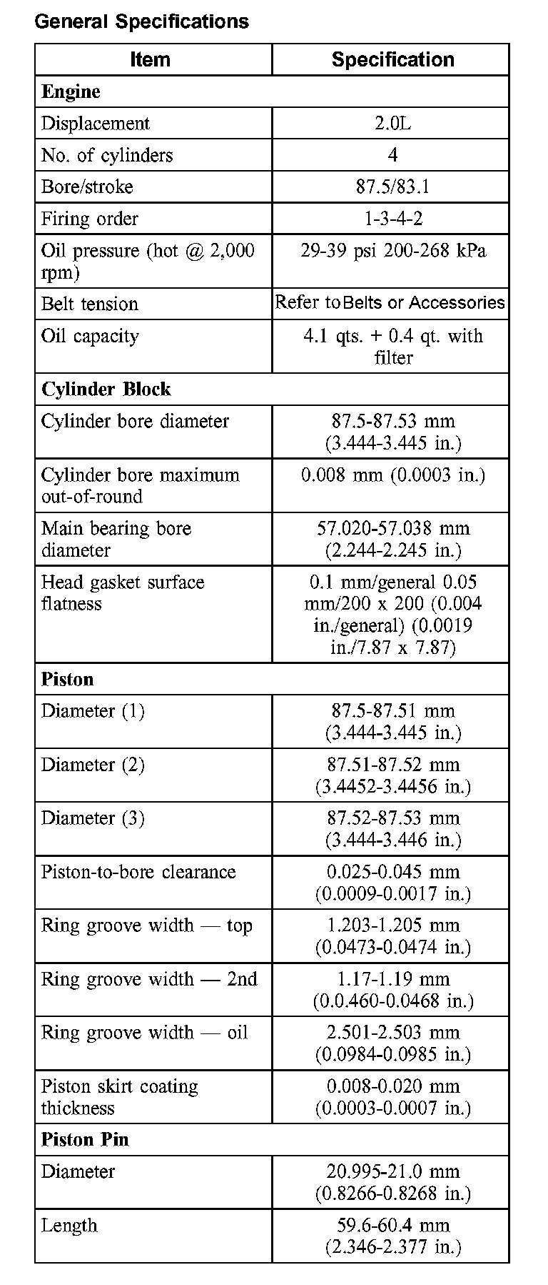 General Specifications: