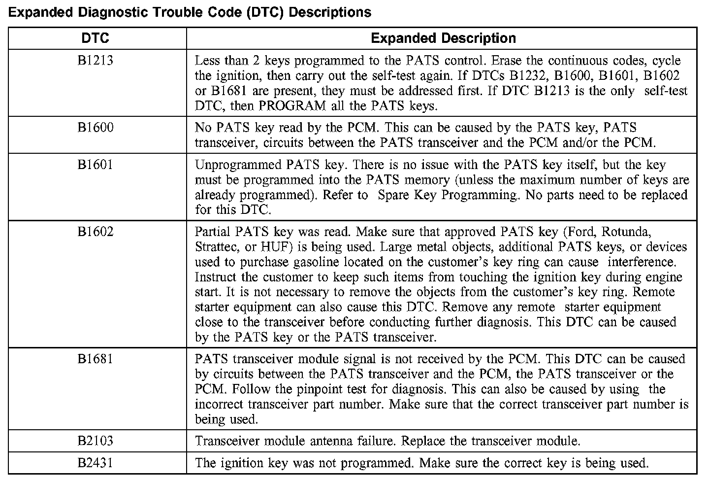 Diagnostic Trouble Code Descriptions