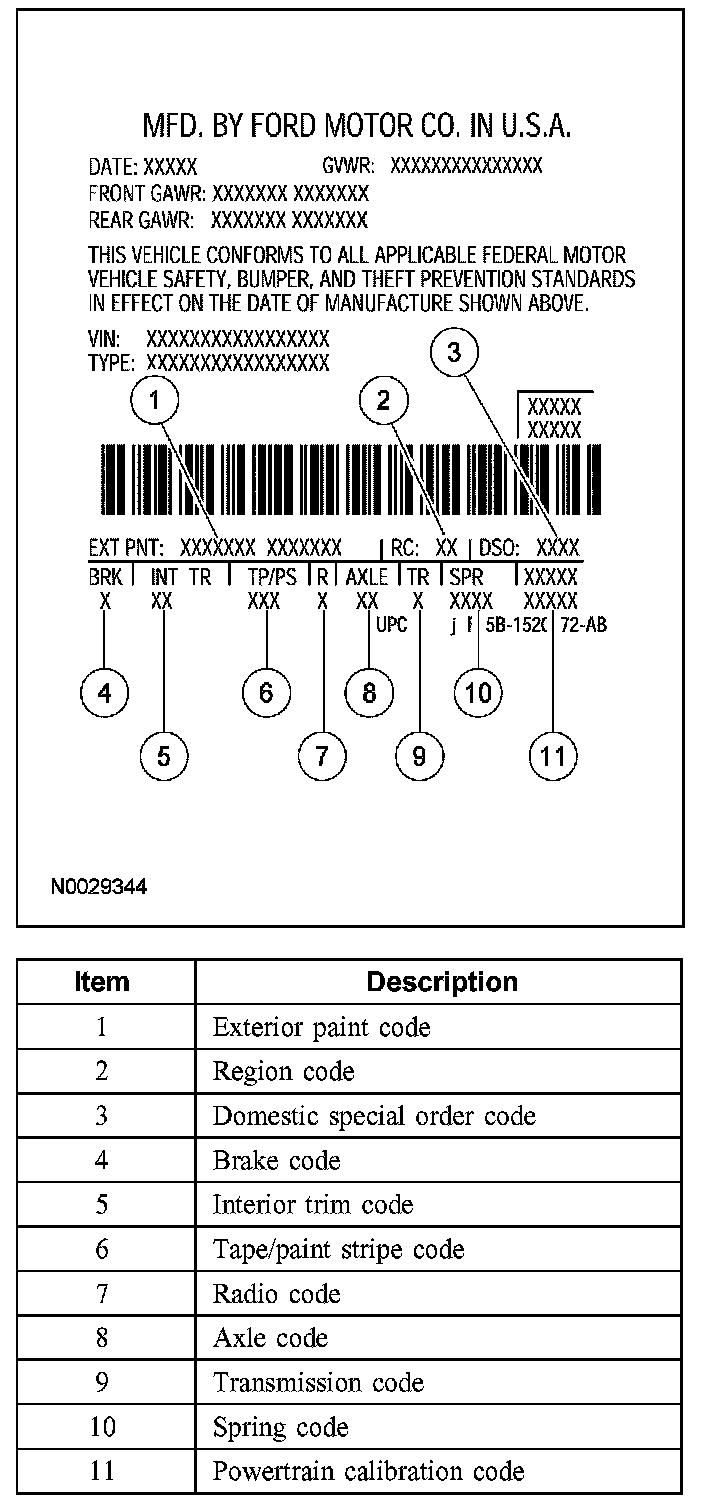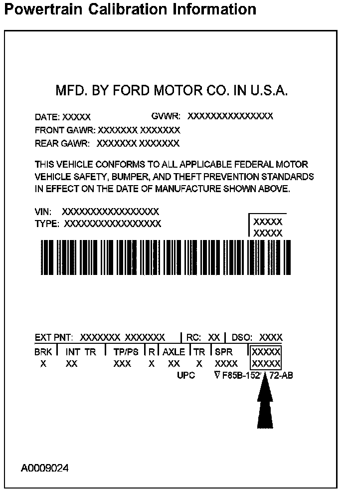 Powertrain calibration information is printed in the lower right corner of the vehicle certification (VC) label. Only the base calibration information is printed. Revision levels will not appear, however, they can be found in On Line Automotive Service Information System (OASIS).