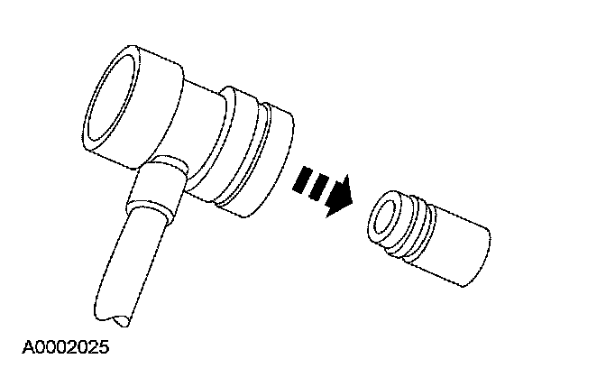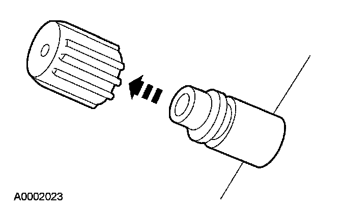 2. Remove the A/C charging valve cap from the low-pressure service gauge port valve.