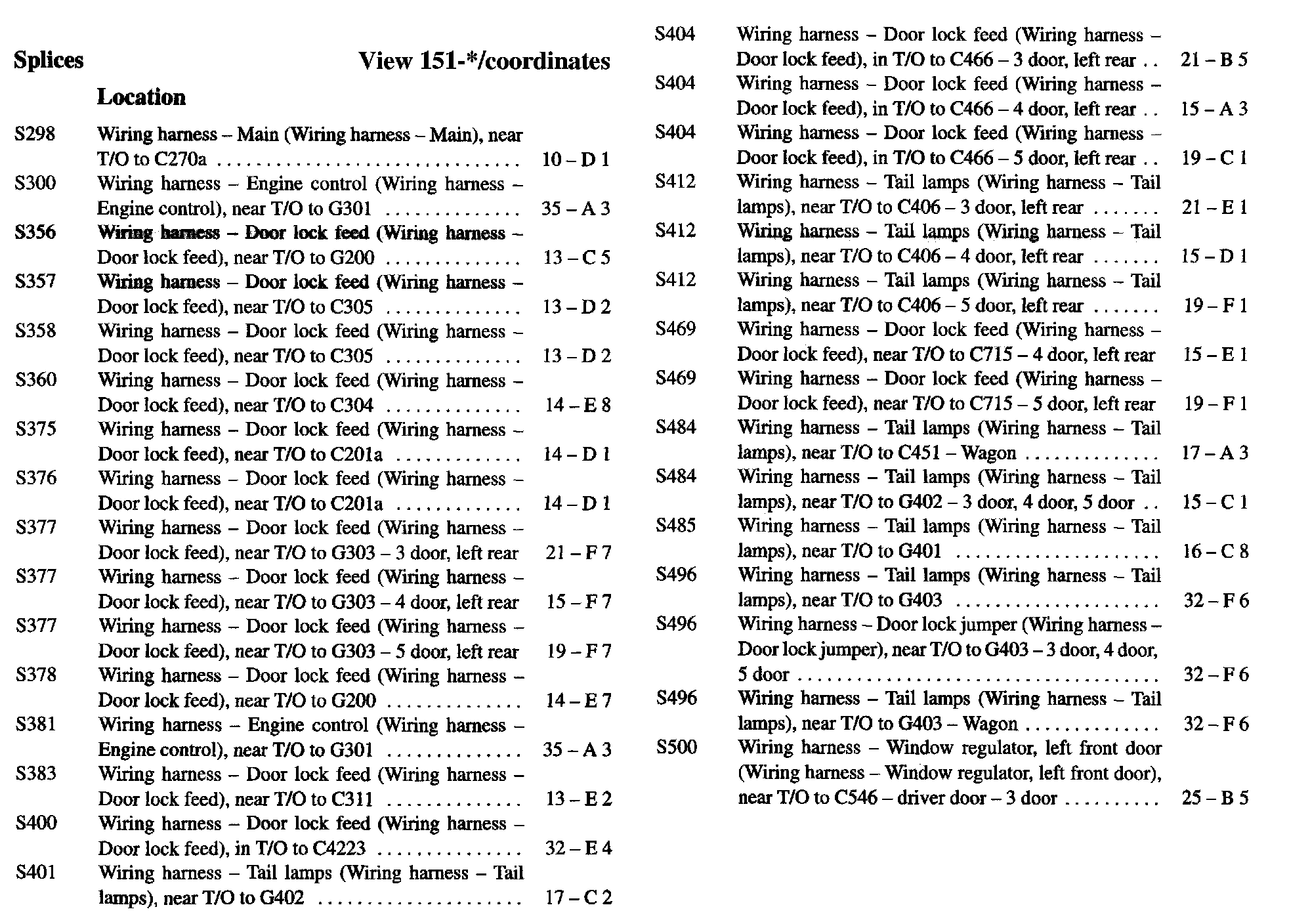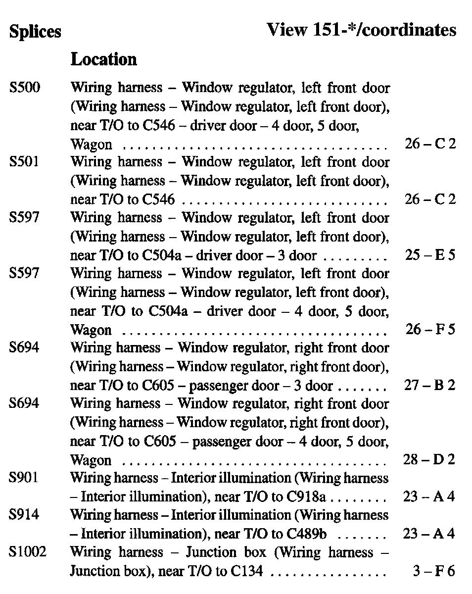 If a link on the Splices Location Index to a View is not provided, that means that the Splices and/or View in question does NOT apply to the vehicle model selected.