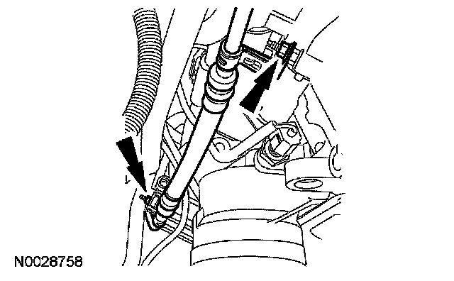 NOTE: Whenever the hoses are disconnected from the power steering pump, make sure the accessory drive belt is not contaminated with power steering fluid.