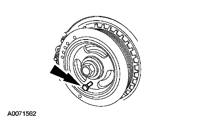 6. Turn the crankshaft pulley bolt to position the No. 1 cylinder at top dead center and install the special tool.