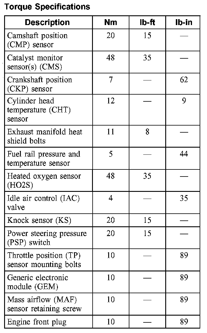 Torque Specifications: