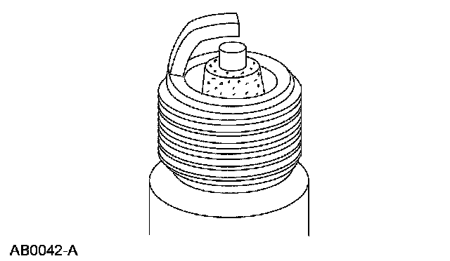3. Inspect for carbon fouling. Look for black, dry, fluffy carbon deposits on the insulator tips, exposed shell surfaces and electrodes, caused by a spark plug with an incorrect heat range, dirty air cleaner, too rich a fuel mixture or excessive idling.