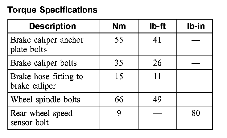 Torque Specifications, Rear