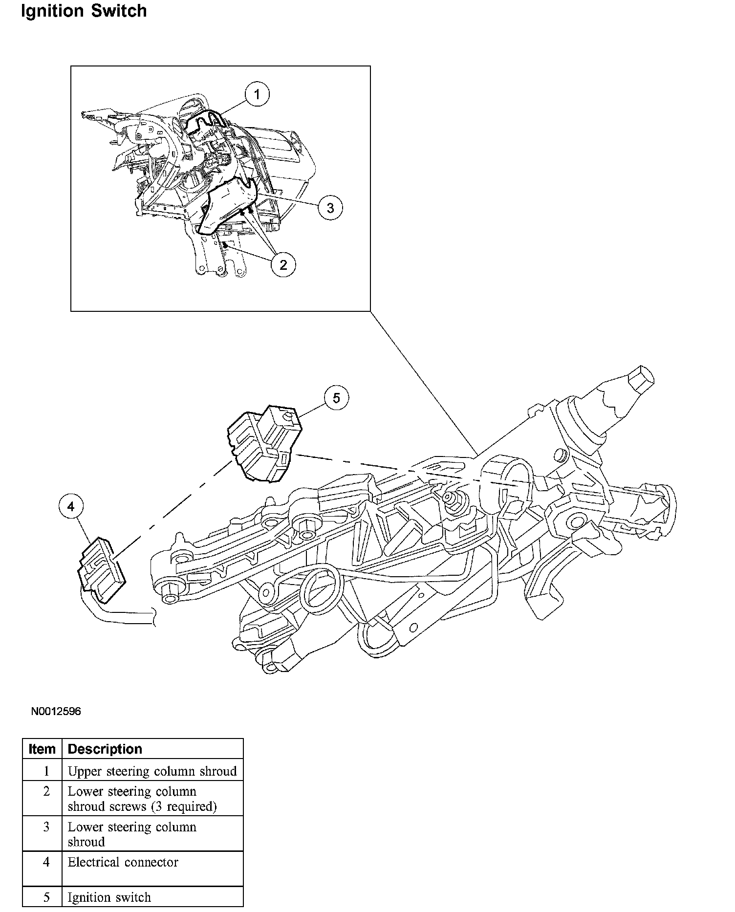 7. Disconnect the ignition switch and the LH multi-function switch electrical connectors.