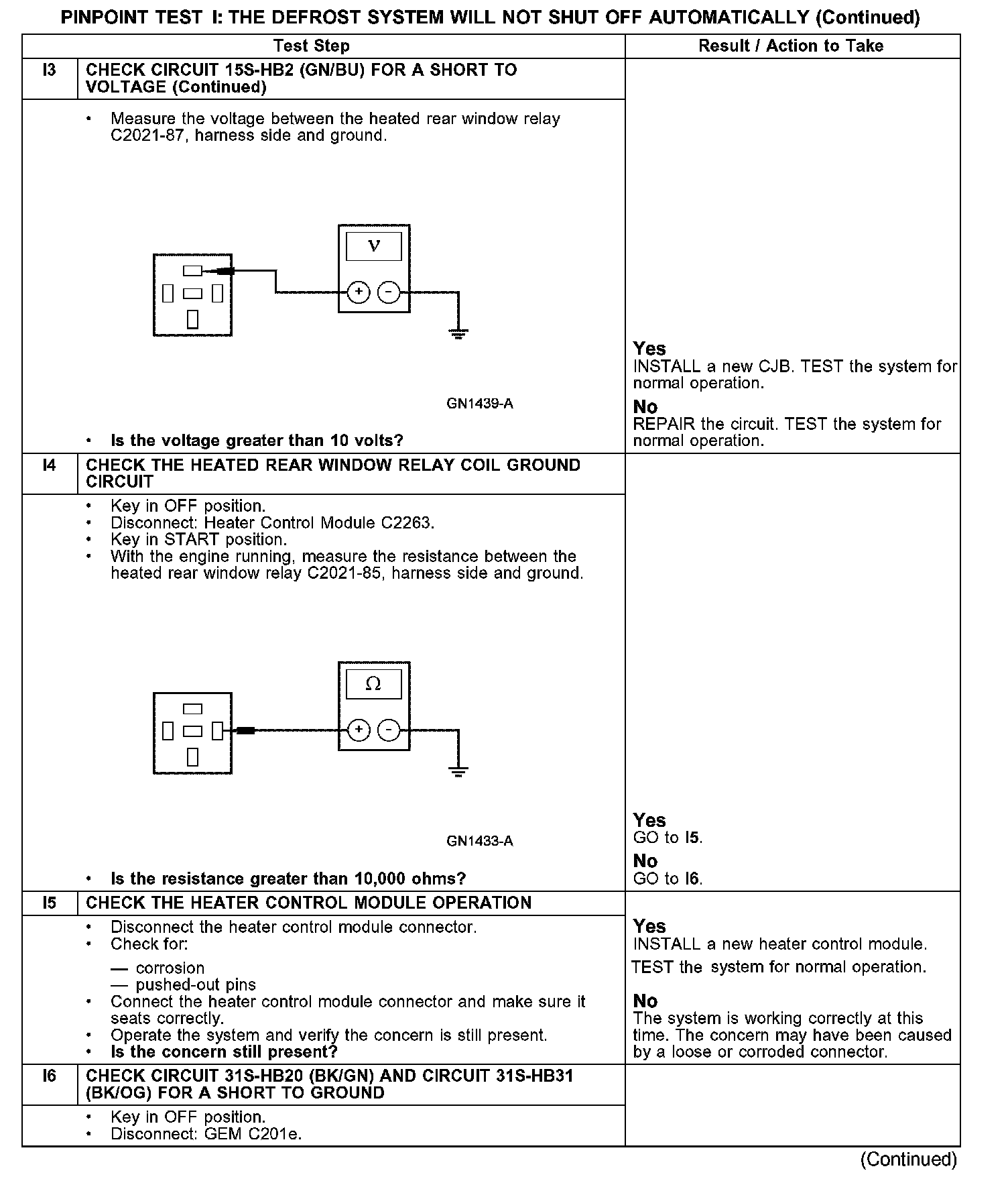 PINPOINT TEST I: THE DEFROST SYSTEM WILL NOT SHUT OFF AUTOMATICALLYI1-I3: