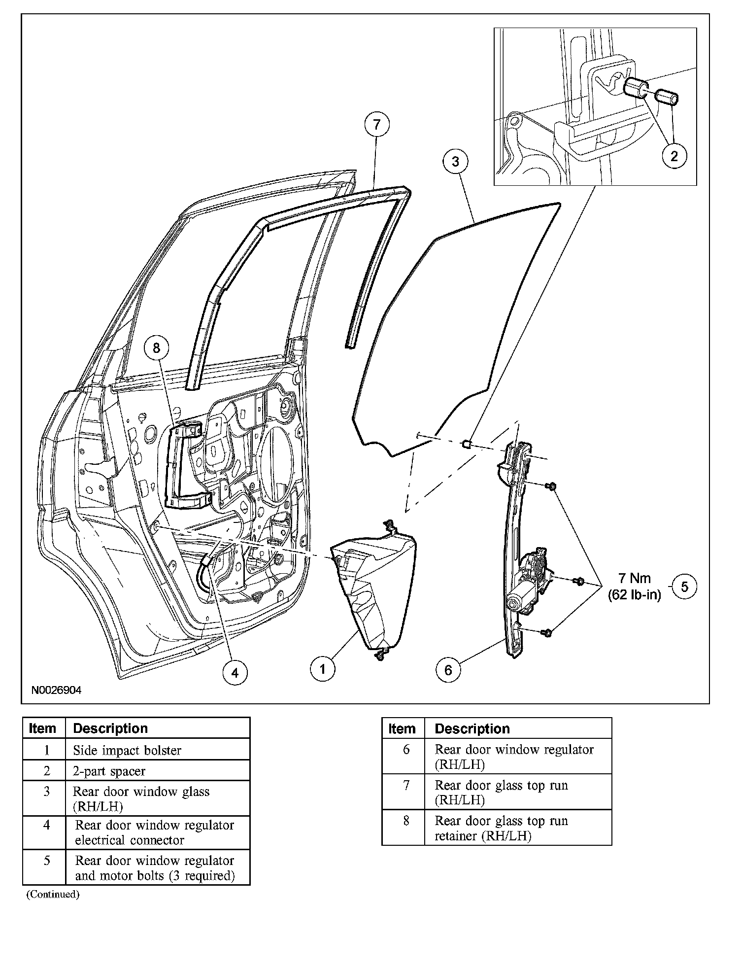 Rear Door Glass, Frames and Mechanisms - Exploded View