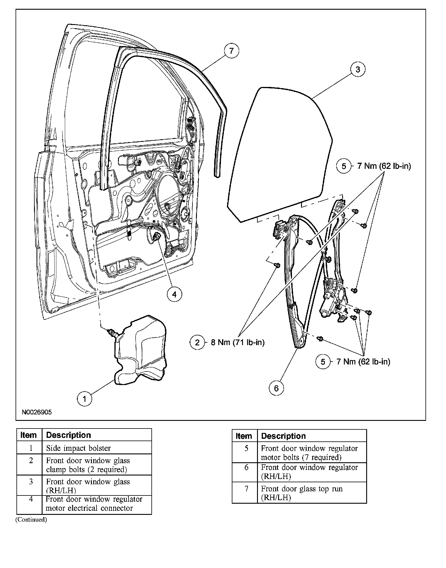 FRONT DOOR WINDOW REGULATOR AND MOTORRemoval and Installation