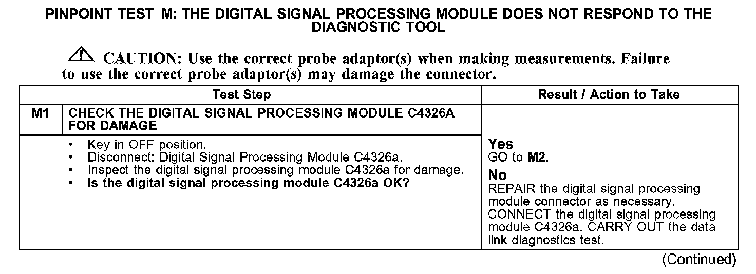 PINPOINT TEST M: THE DIGITAL SIGNAL PROCESSING MODULE DOES NOT RESPOND TO THE DIAGNOSTIC TOOLM1: