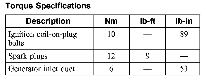 Torque Specifications: