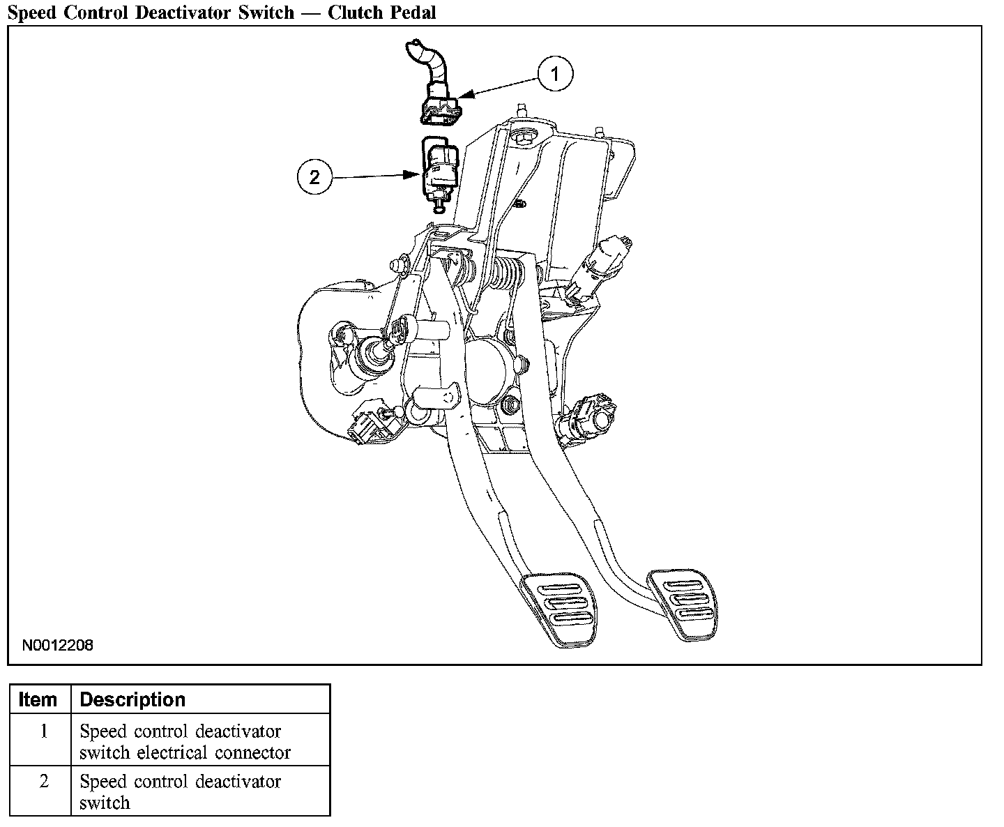 1. CAUTION: Do not press the pedal when removing or installing the speed control deactivator switch, as the switch will be damaged.