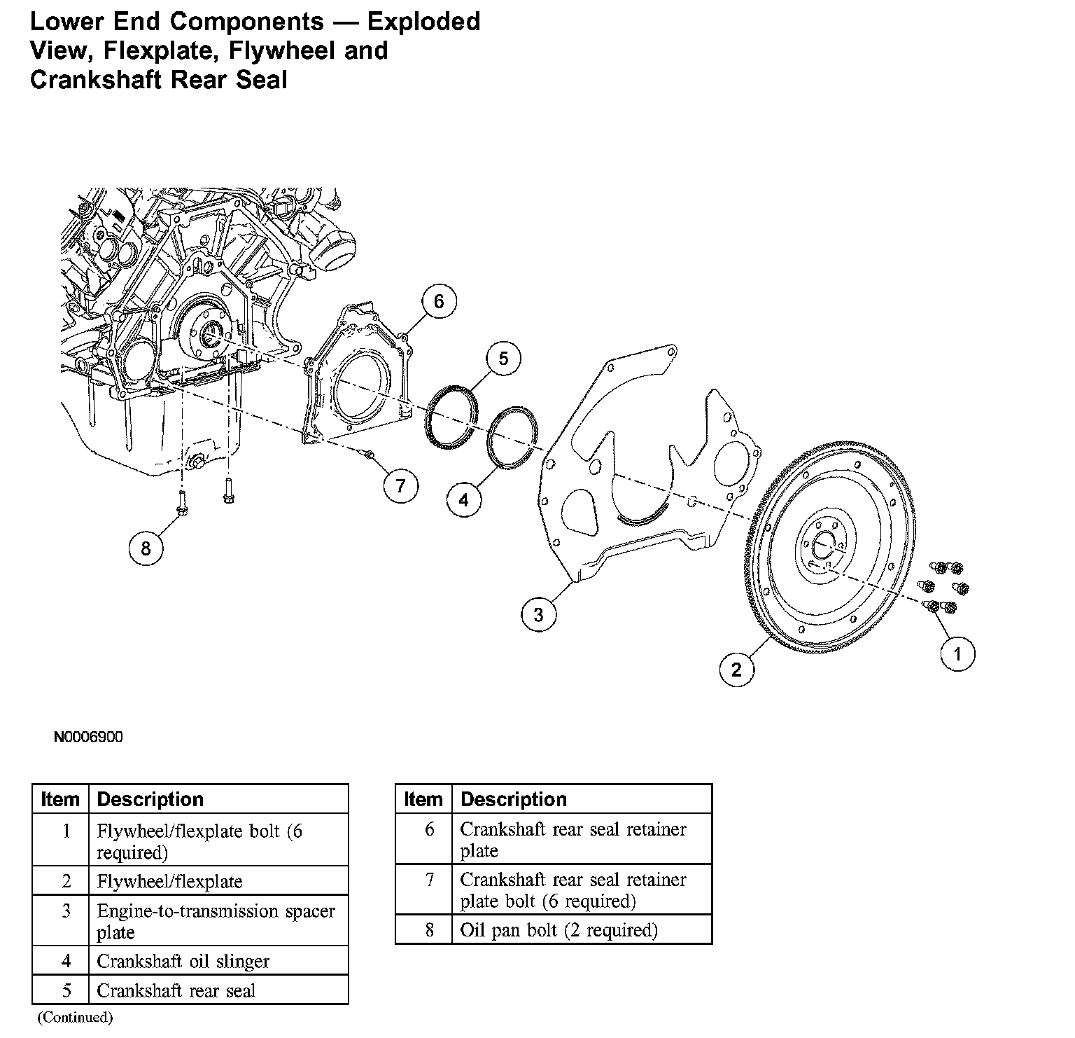 Lower End Components - Exploded View, Flexplate, Flywheel and Crankshaft Rear Seal: