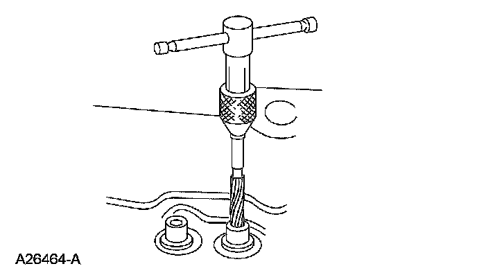 2. If the valve guide is not within specifications, ream the valve guide and install a valve with an oversize stem or remove the valve guide and install a new valve guide.