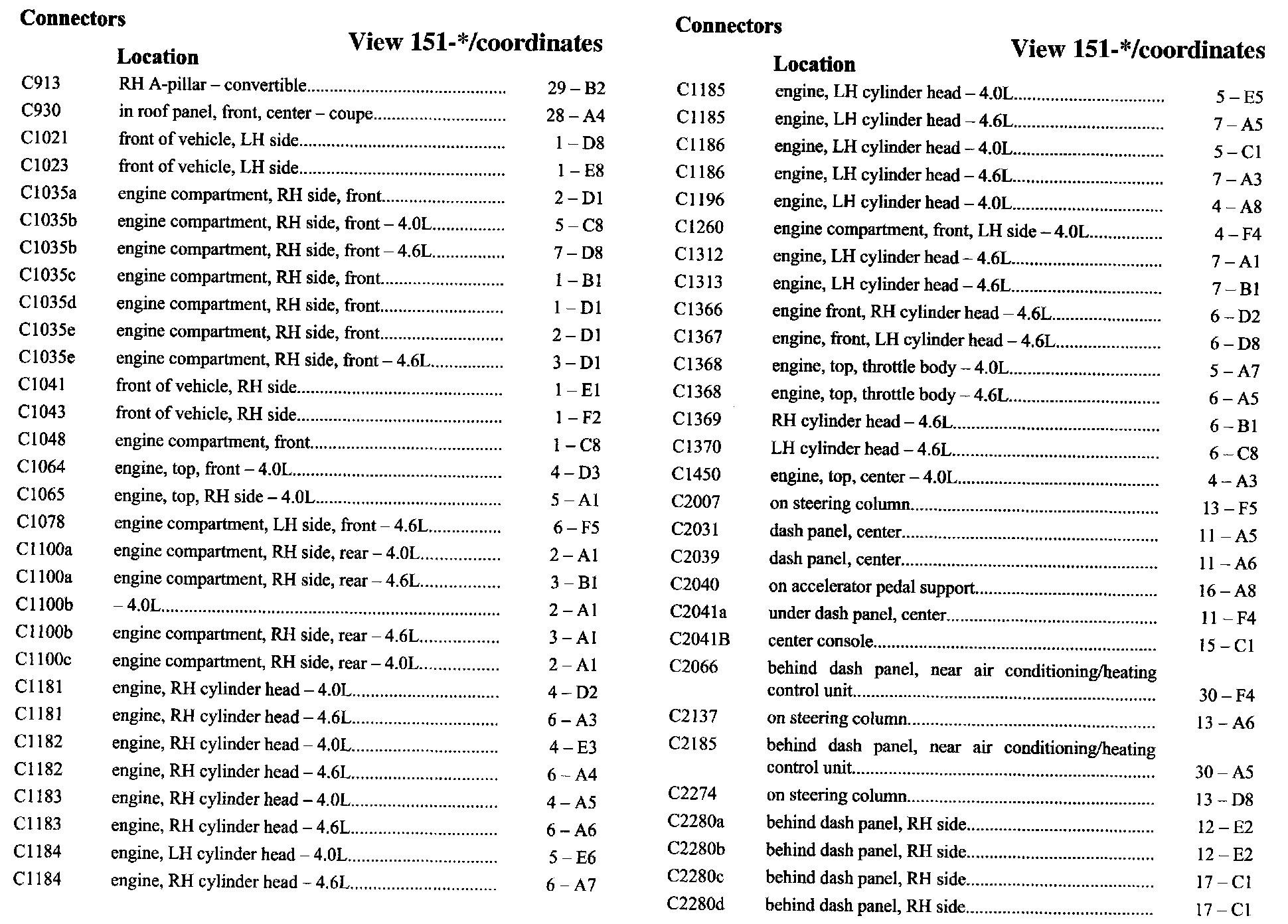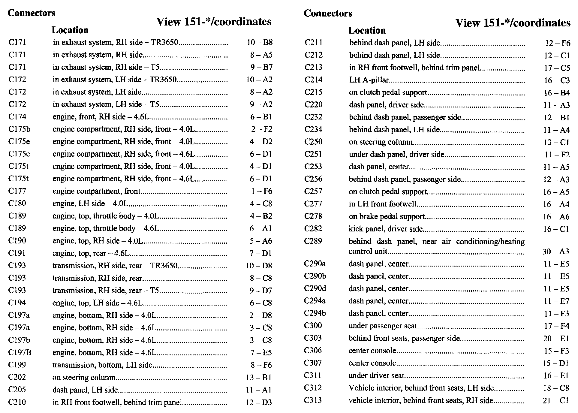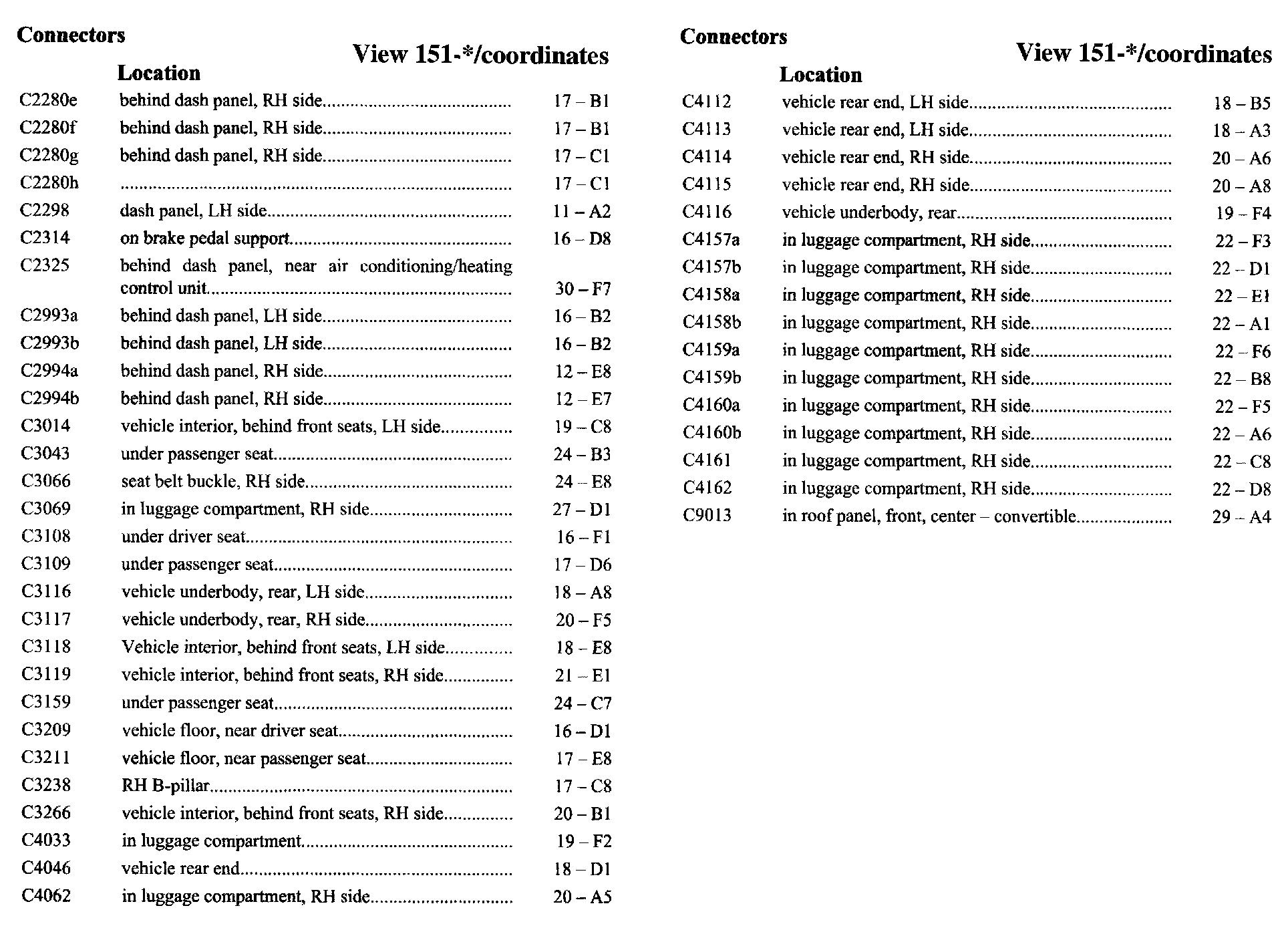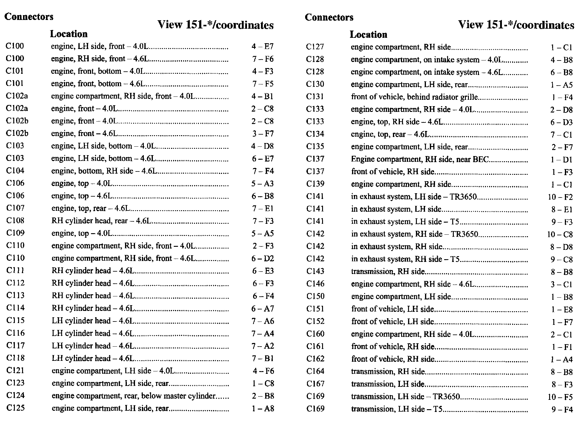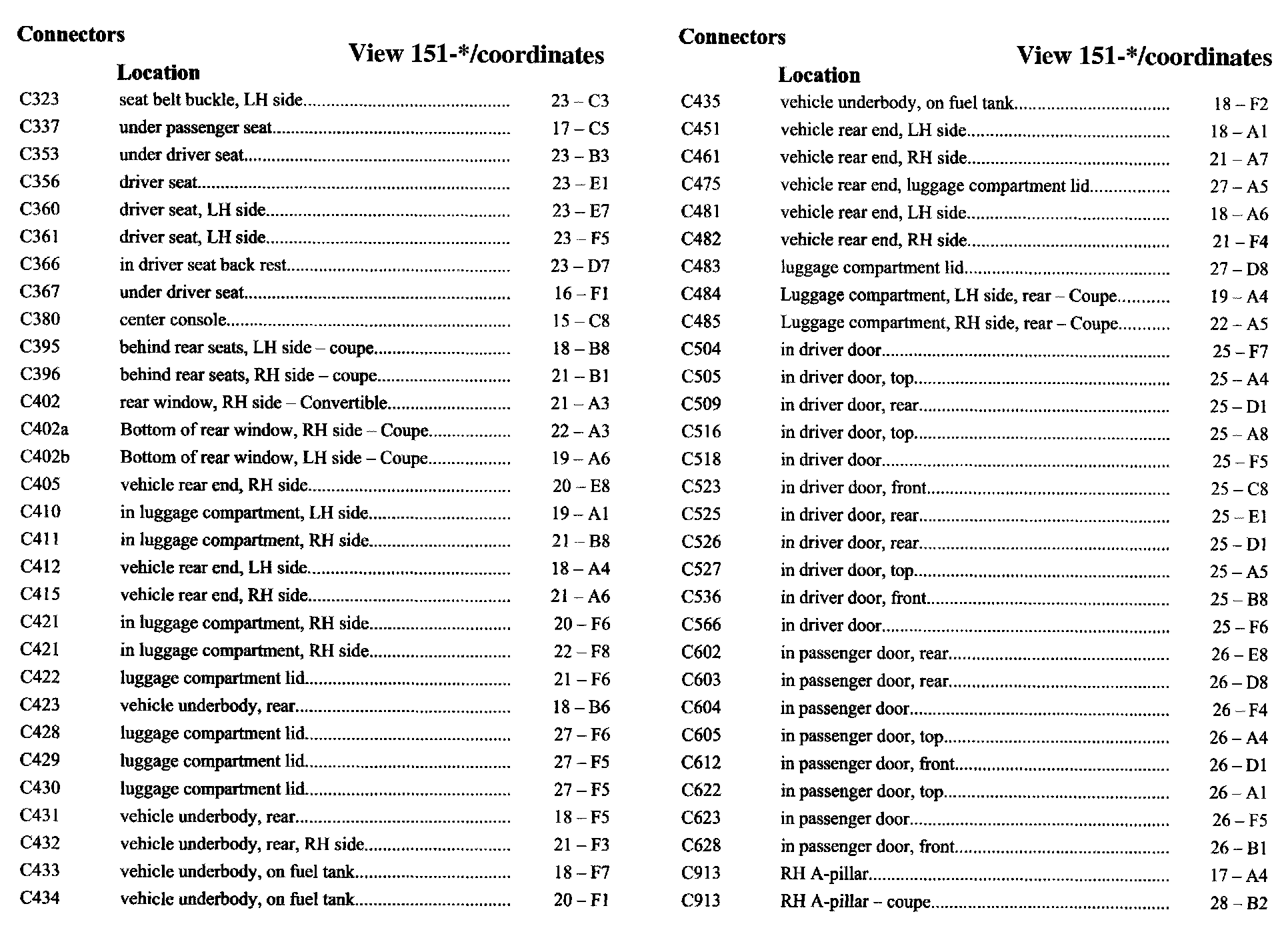 PLEASE NOTE: If a link on the Connector Location Index to a View is not provided, that means that the Connector and/or View in question does NOT apply to the vehicle model selected.
