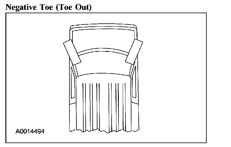Wheel Alignment AnglesCamber and toe are adjustable on the front suspension systems. Front camber is adjusted through the use of a service repair kit (2B236). Caster is preset at the factory and should only be adjusted, through the use of a service repair kit (2B236), after all other possible sources have been inspected and corrected as necessary. Front toe is adjusted by the use of the front wheel spindle tie rod.