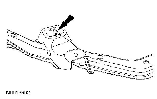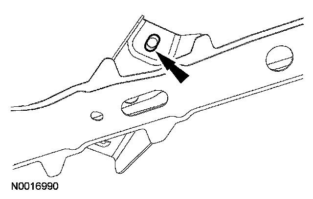 Using a suitable grinding tool, elongate the lower control arm rear outboard mounting hole as indicated by the etchings in the subframe.
