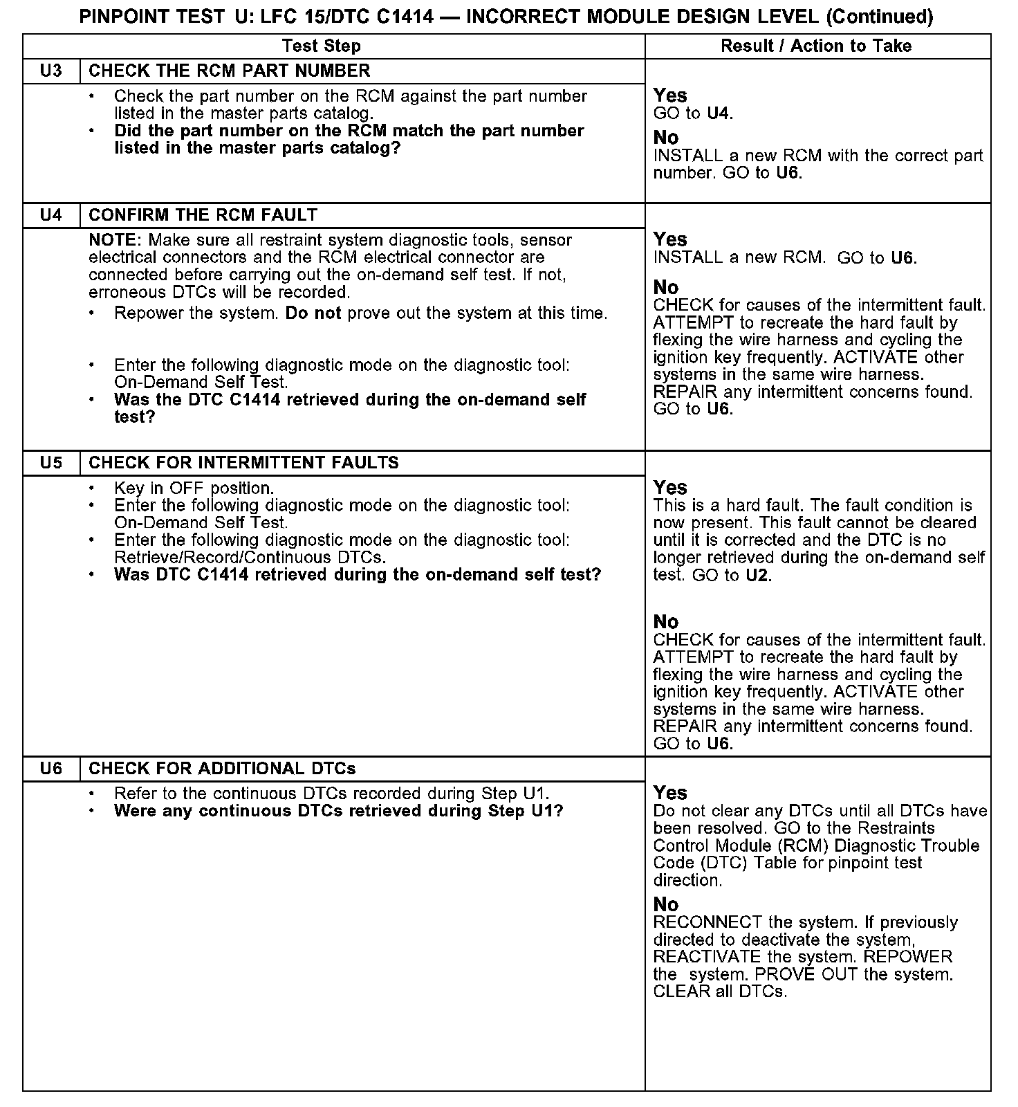 PINPOINT TEST U: LFC 15/DTC C1414 - INCORRECT MODULE DESIGN LEVELU1-U2: