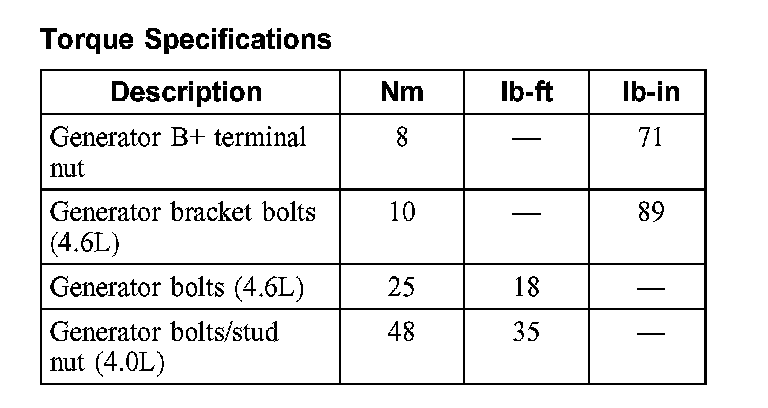 Torque Specifications:
