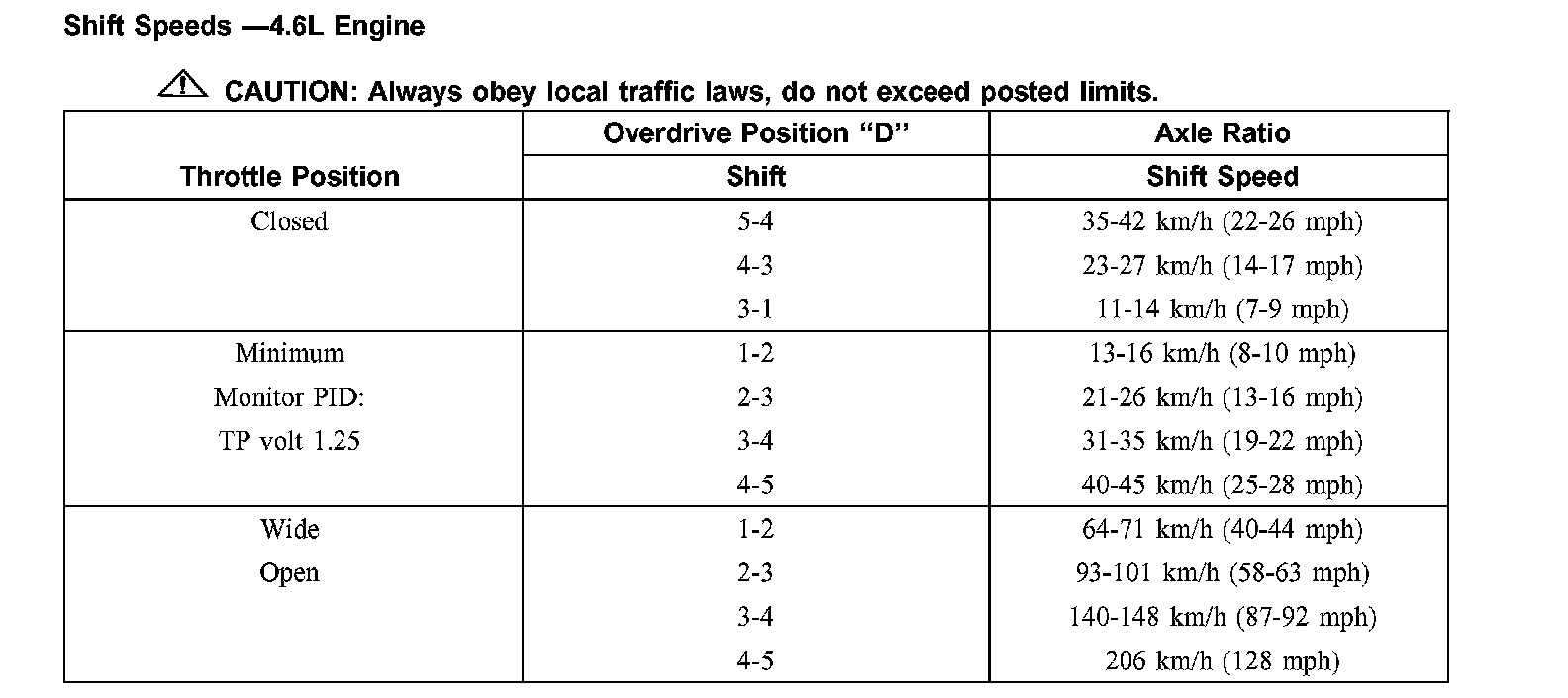 Shift Speeds - 4.6L Engine: