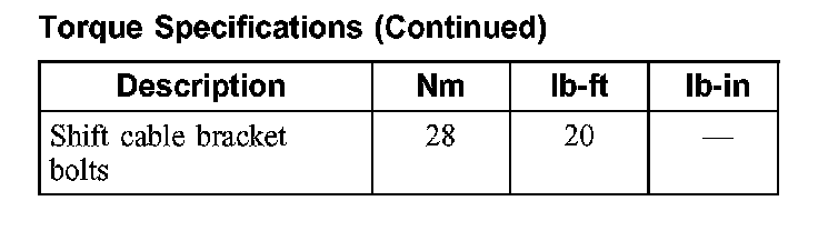 Torque Specifications: