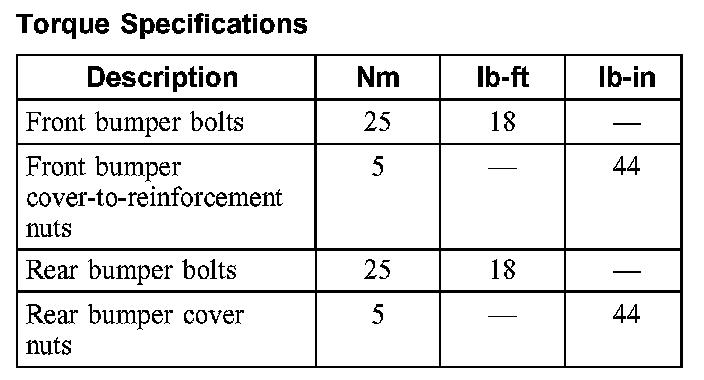Torque Specifications: