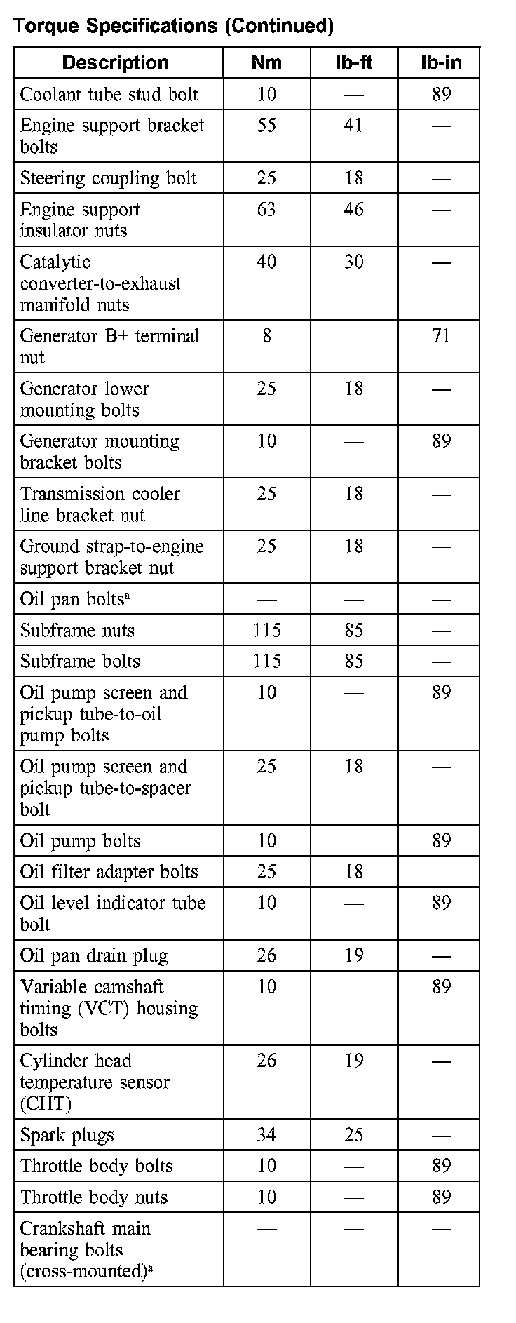 Torque Specifications