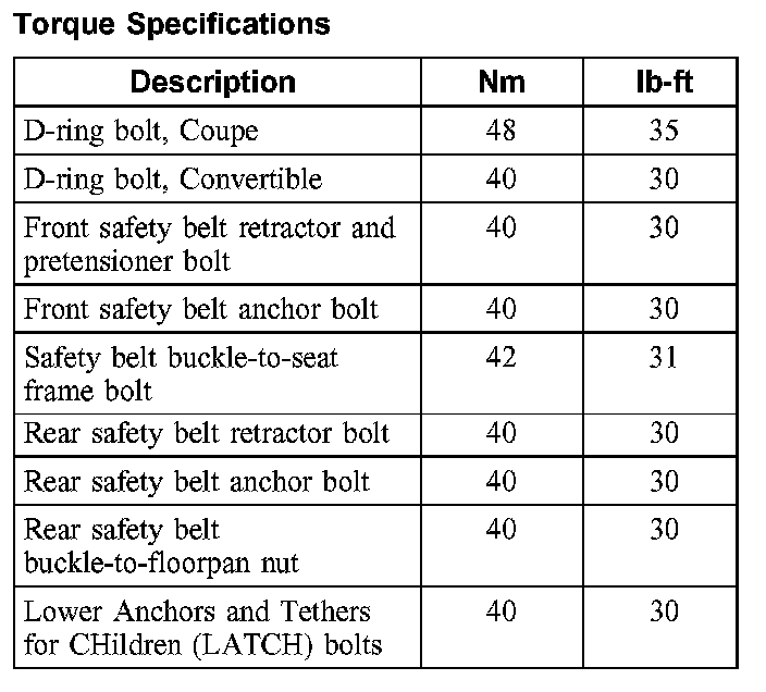 Torque Specifications: