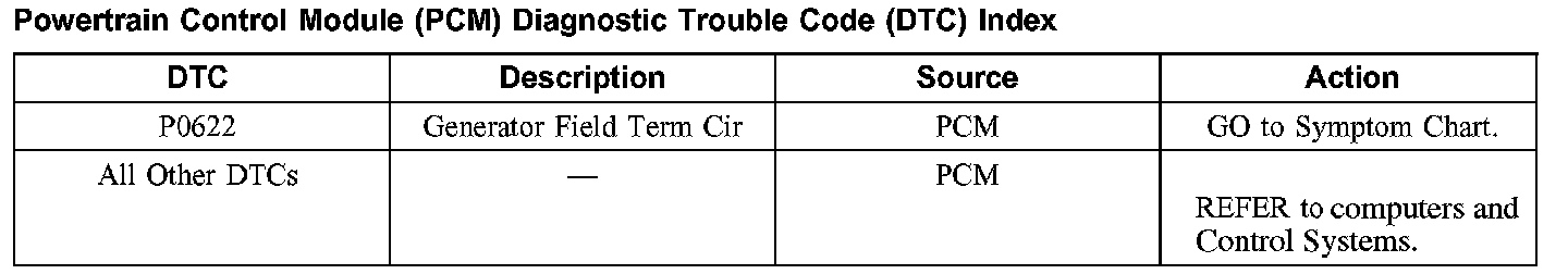 Powertrain Control Module (PCM) Diagnostic Trouble Code (DTC) Index
