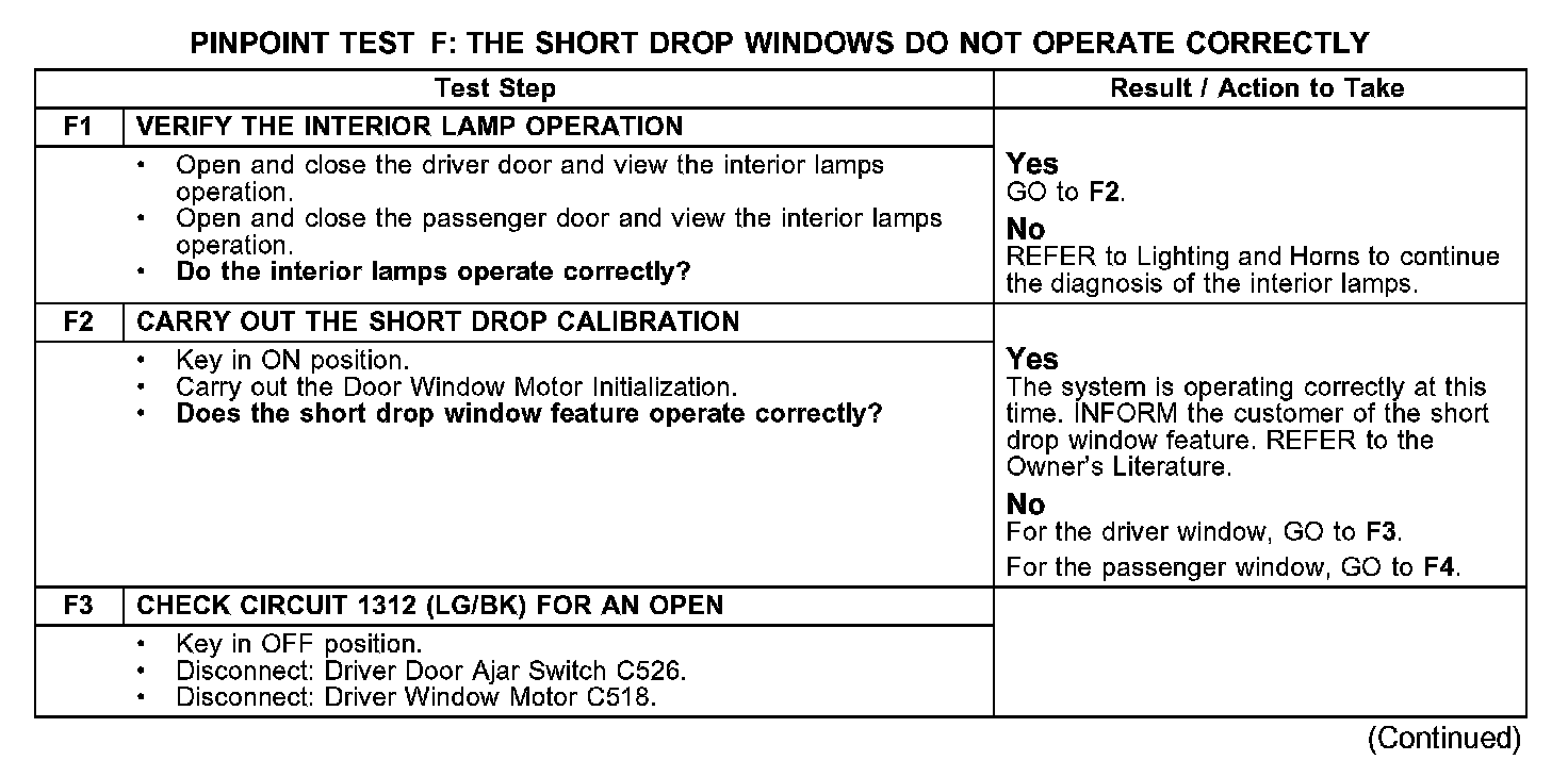 PINPOINT TEST F: THE SHORT DROP WINDOWS DO NOT OPERATE CORRECTLYF1-F3: