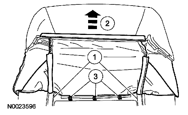 6. NOTE: If the pin-type retainers are damaged, install new retainers. This will keep the wiring harness routed correctly.