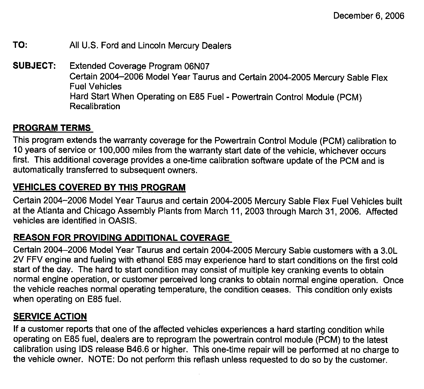 Taurus V6-3.0L VIN 2 Flex Fuel