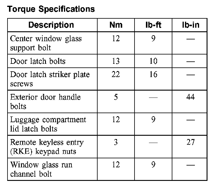 Torque Specifications: