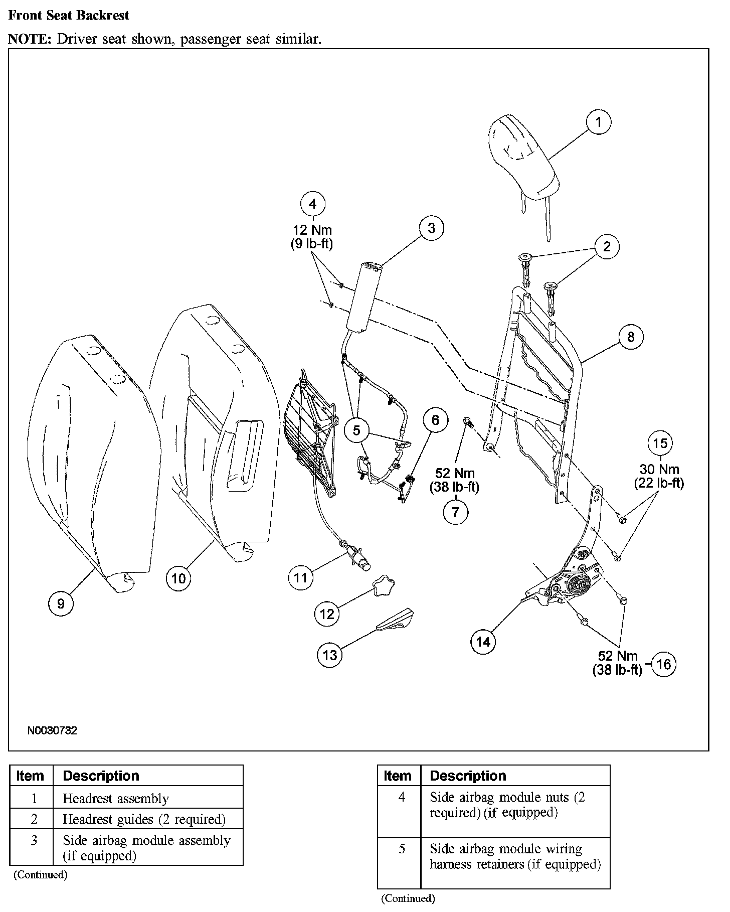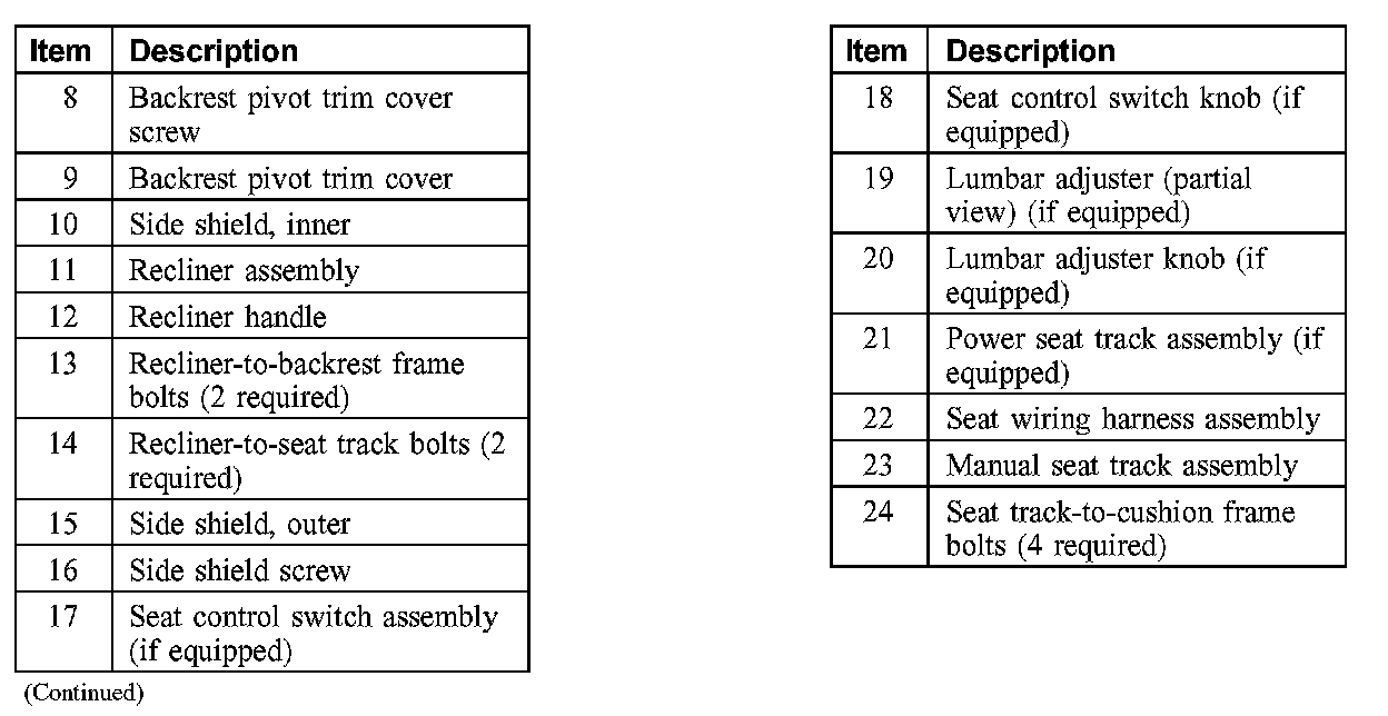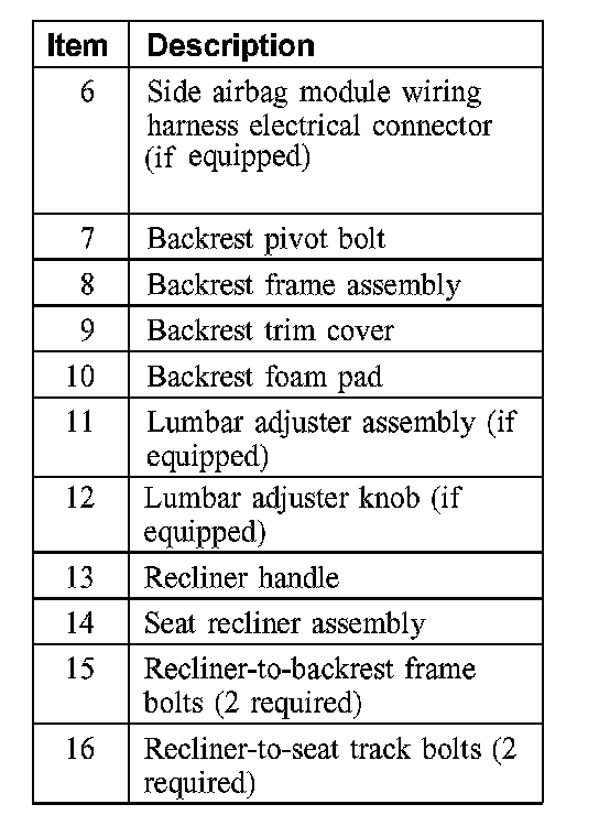 SEAT - EXPLODED VIEW, FRONTFront Seat Backrest (Part 1):