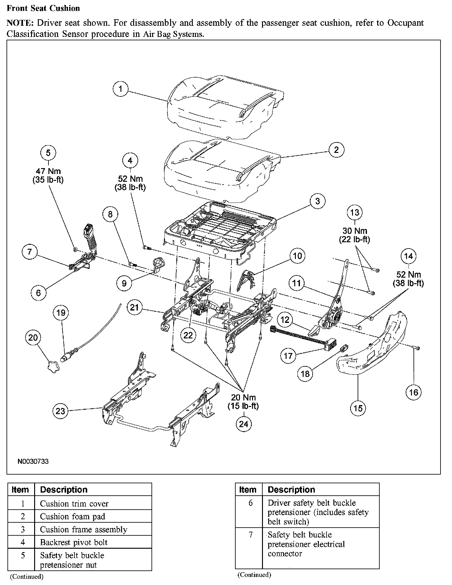 Front Seat Cushion (Part 1):