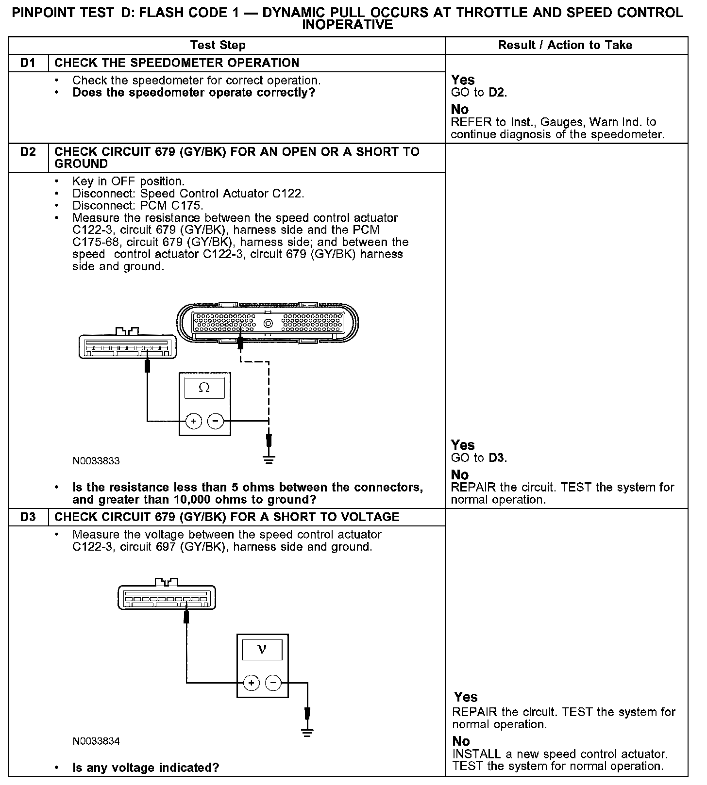 PINPOINT TEST D: FLASH CODE 1 - DYNAMIC PULL OCCURS AT THROTTLE AND SPEED CONTROL INOPERATIVED1-D3: