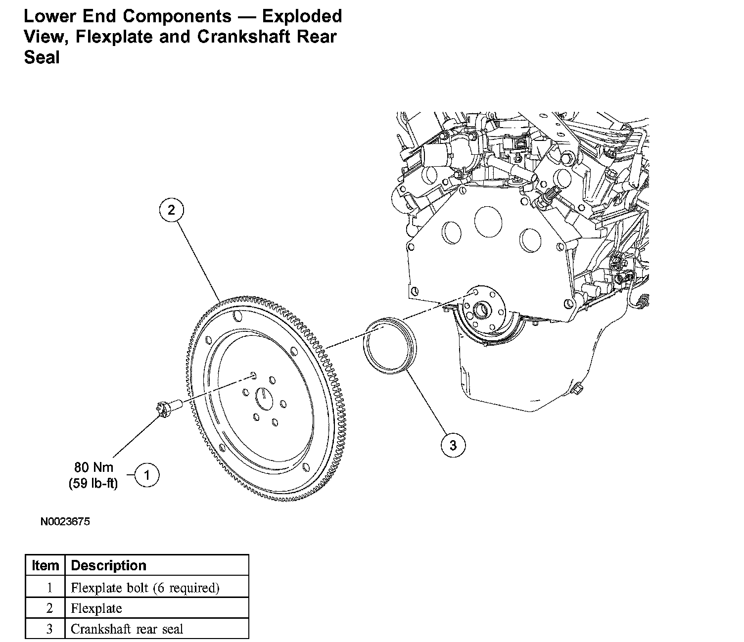 Lower End Components - Exploded View, Flexplate and Crankshaft Rear Seal