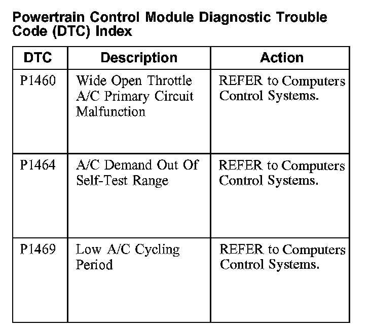 Powertrain Control Module Diagnostic Trouble Code (DTC) Index