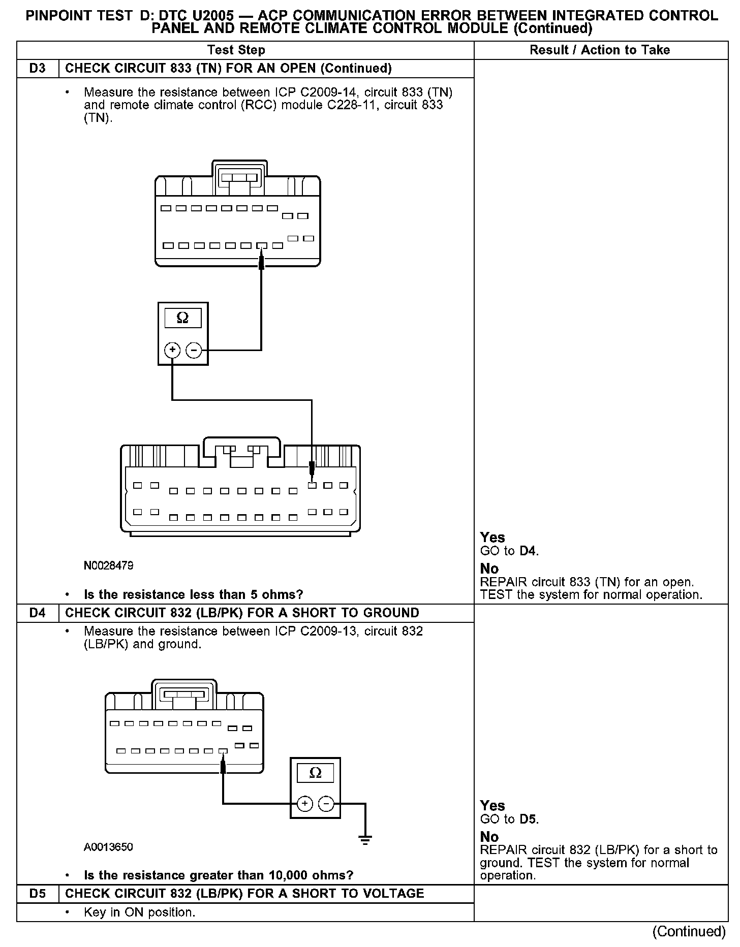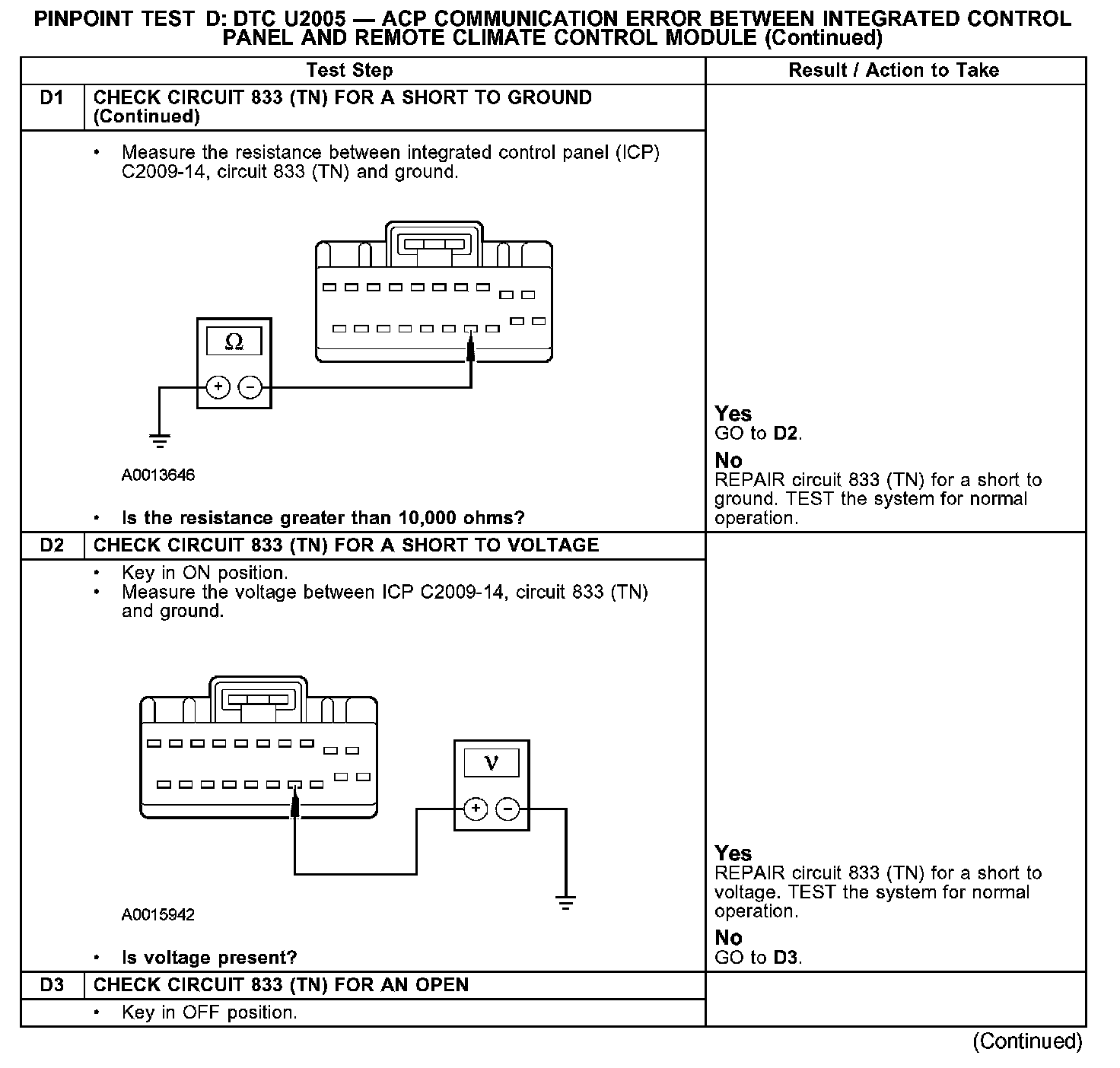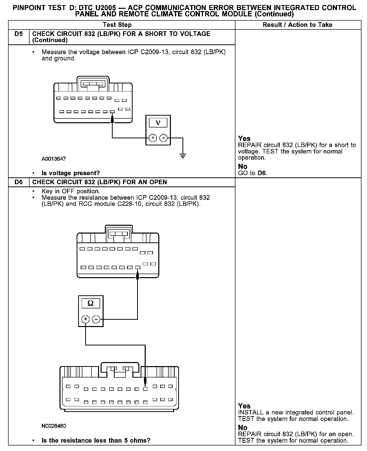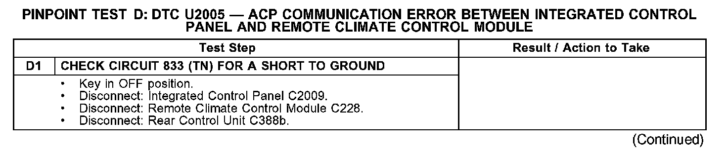 Test D: DTC U2005 - ACP Communication Error Between Integrated Control Panel and Remote Climate Control Module