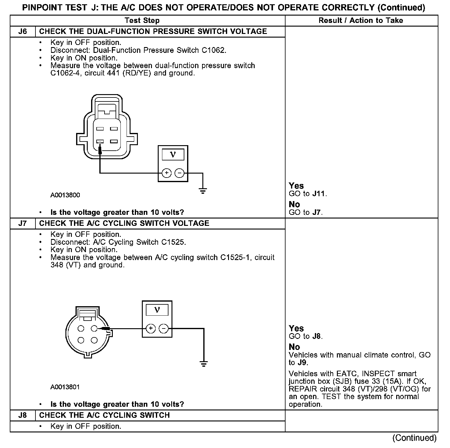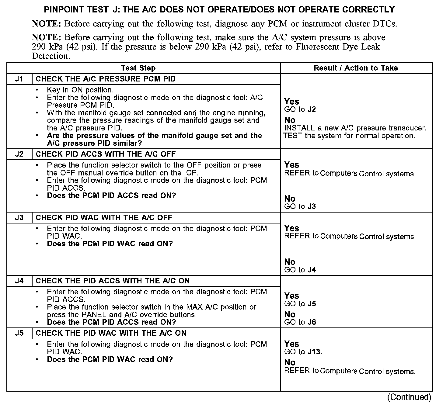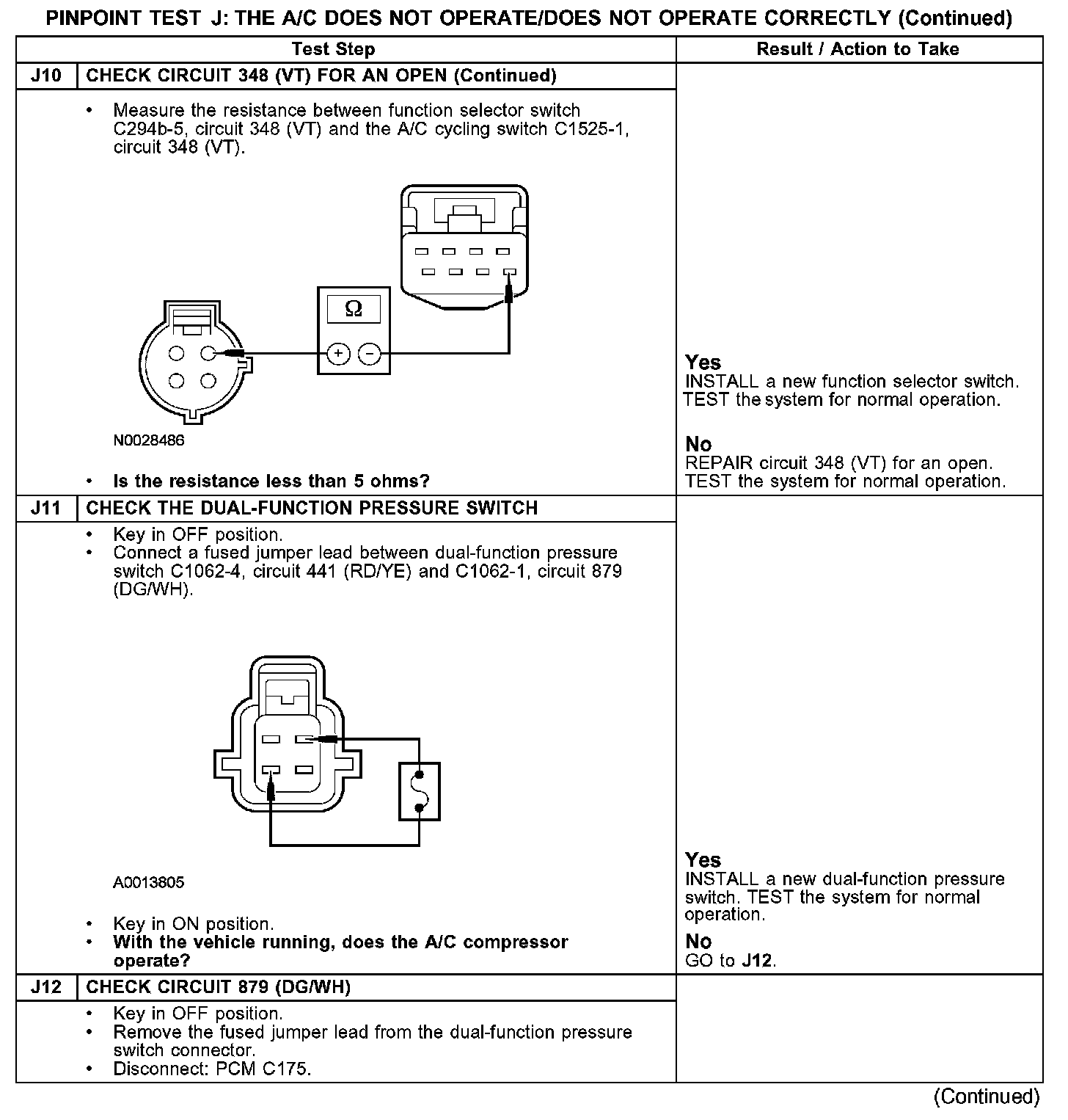 Test J: The A/C Does Not Operate/Does Not Operate Correctly