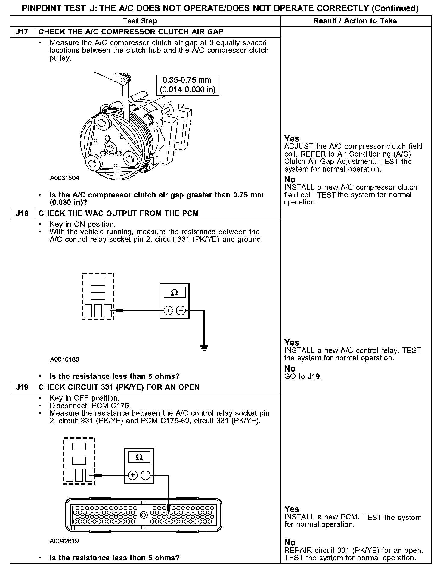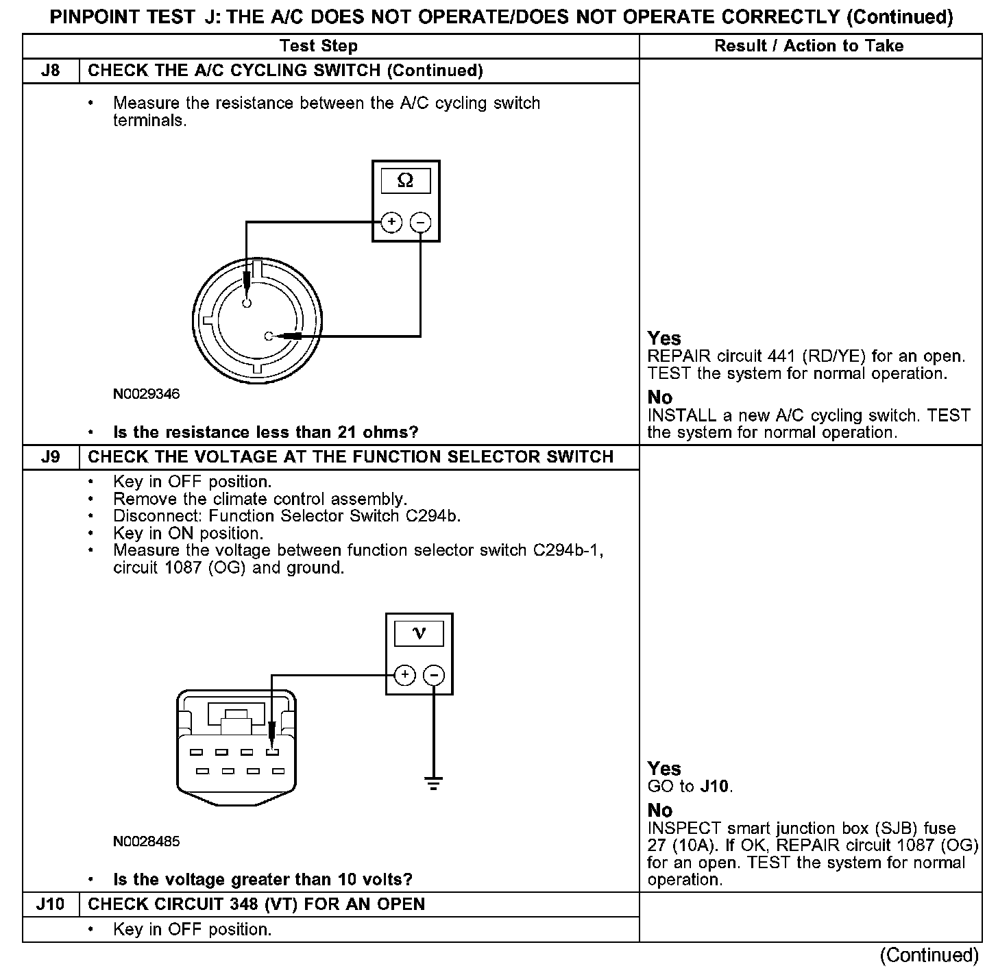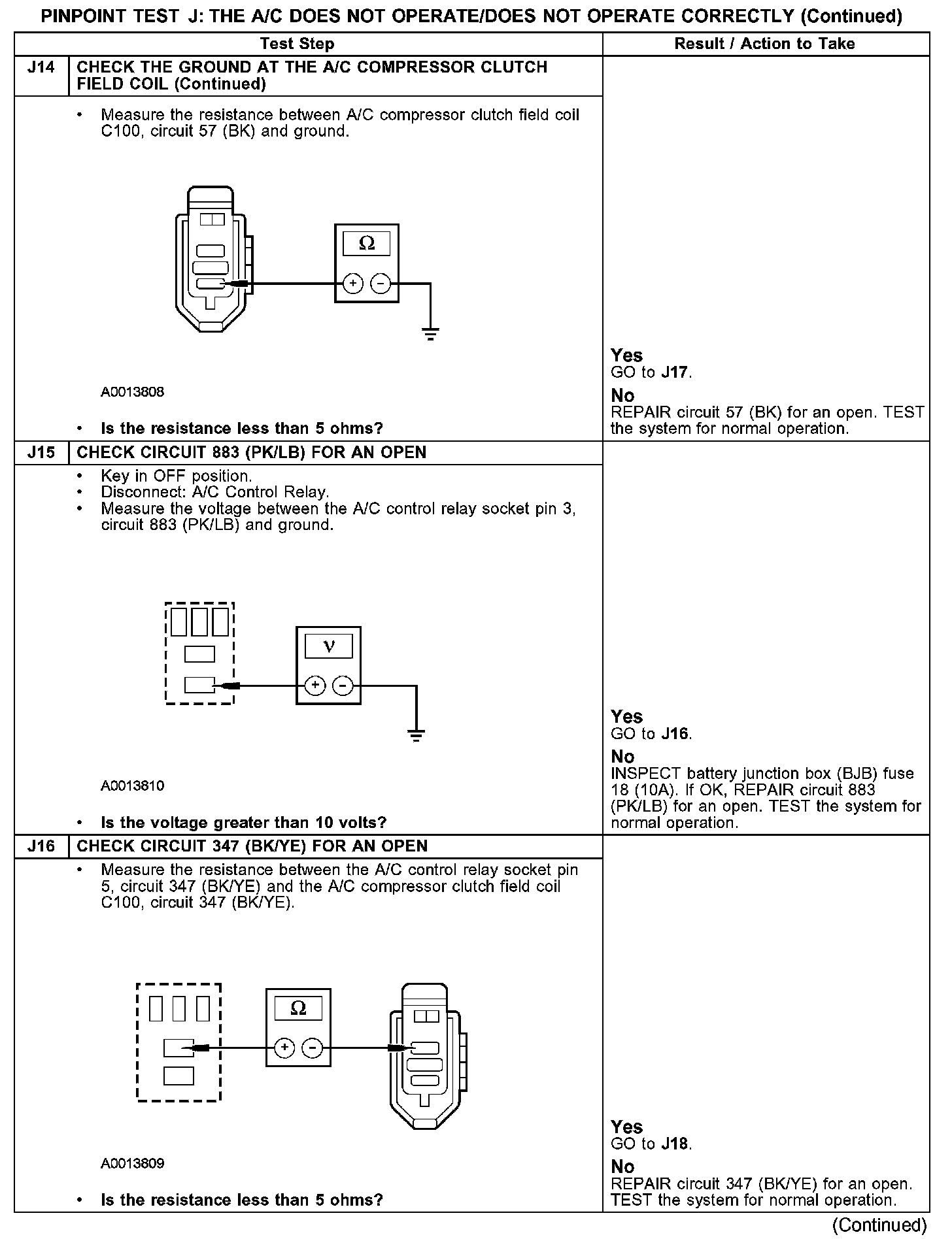 Test J: The A/C Does Not Operate/Does Not Operate Correctly