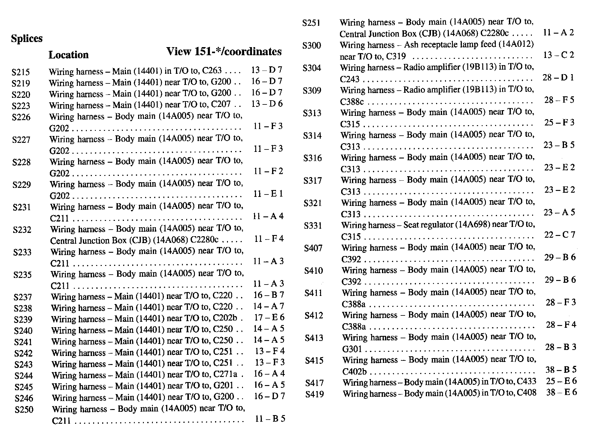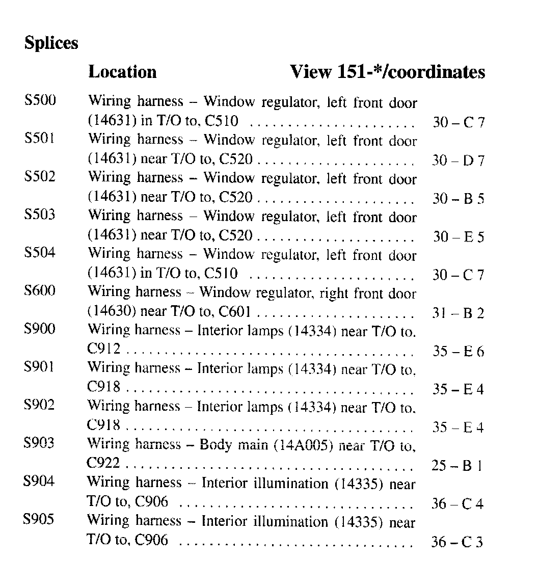 If a link on the Splices Location Index to a View is not provided, that means that the Splices and/or View in question does NOT apply to the vehicle model selected.